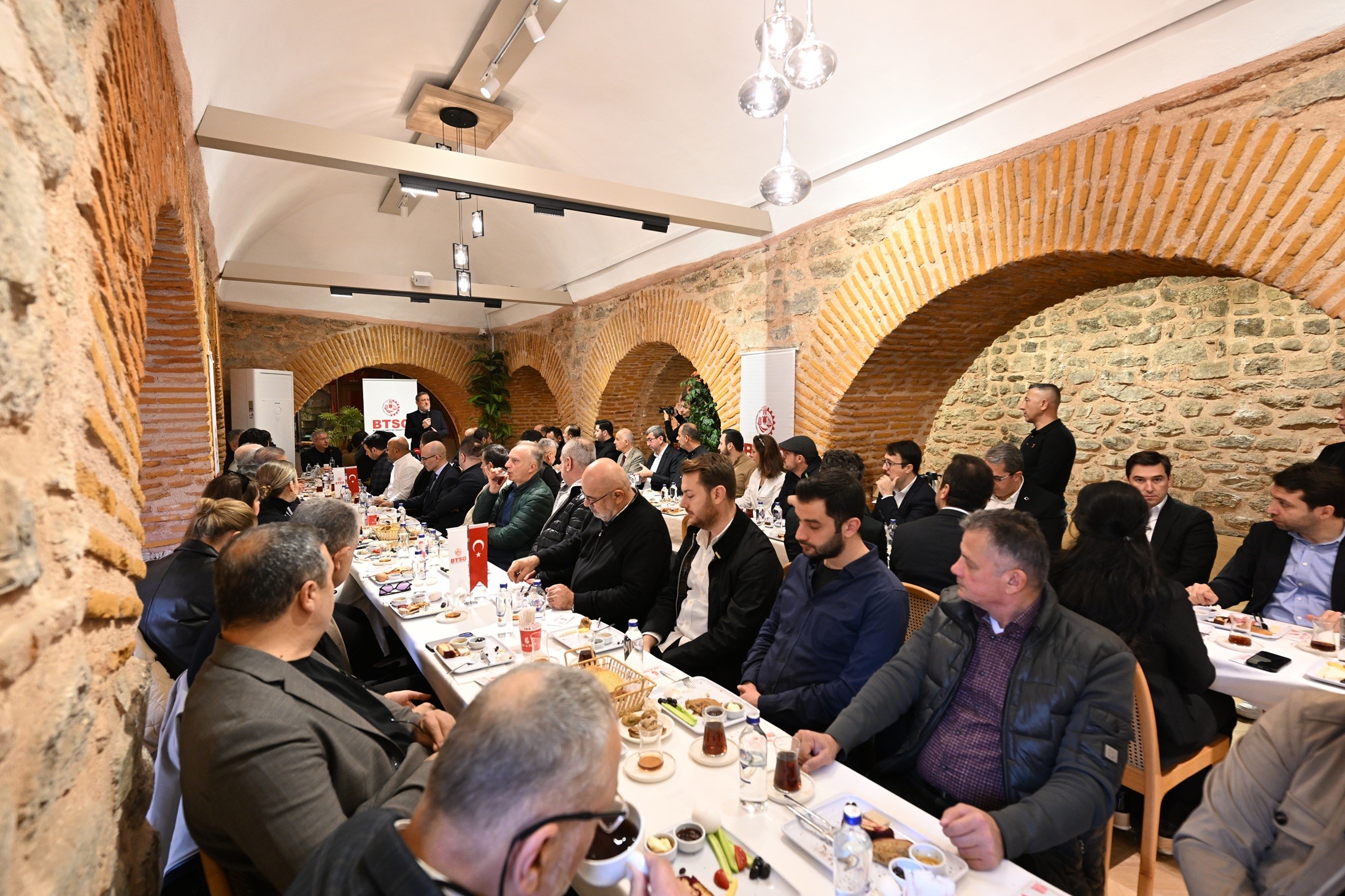 BTSO Yönetim Kurulu Başkanı İbrahim Burkay, yönetim kurulu üyeleri ve meclis divan üyeleri, Bursa Tarihi Çarşı ve Hanlar Birliği (BTÇH) Başkanı İsa Altıkardeş, çarşı başkanları ve bölgedeki BTSO üyeleri ile bir araya geldi. Koza Han’da gerçekleştirilen programda konuşan İbrahim Burkay, Tarihi Çarşı ve Hanlar Bölgesi’nin Bursa’nın kültürel kimliğini taşıyan güçlü bir okul niteliğinde olduğunu ifade ederek, "Çarşı bizim doğduğumuz, büyüdüğümüz ve mesleki meşguliyetimizin şekillendiği bölge. Bugün bu bölgeden yetişen birçok dostumuz hem Bursa’ya hem ülkemize büyük değer katmaya devam ediyor" dedi.