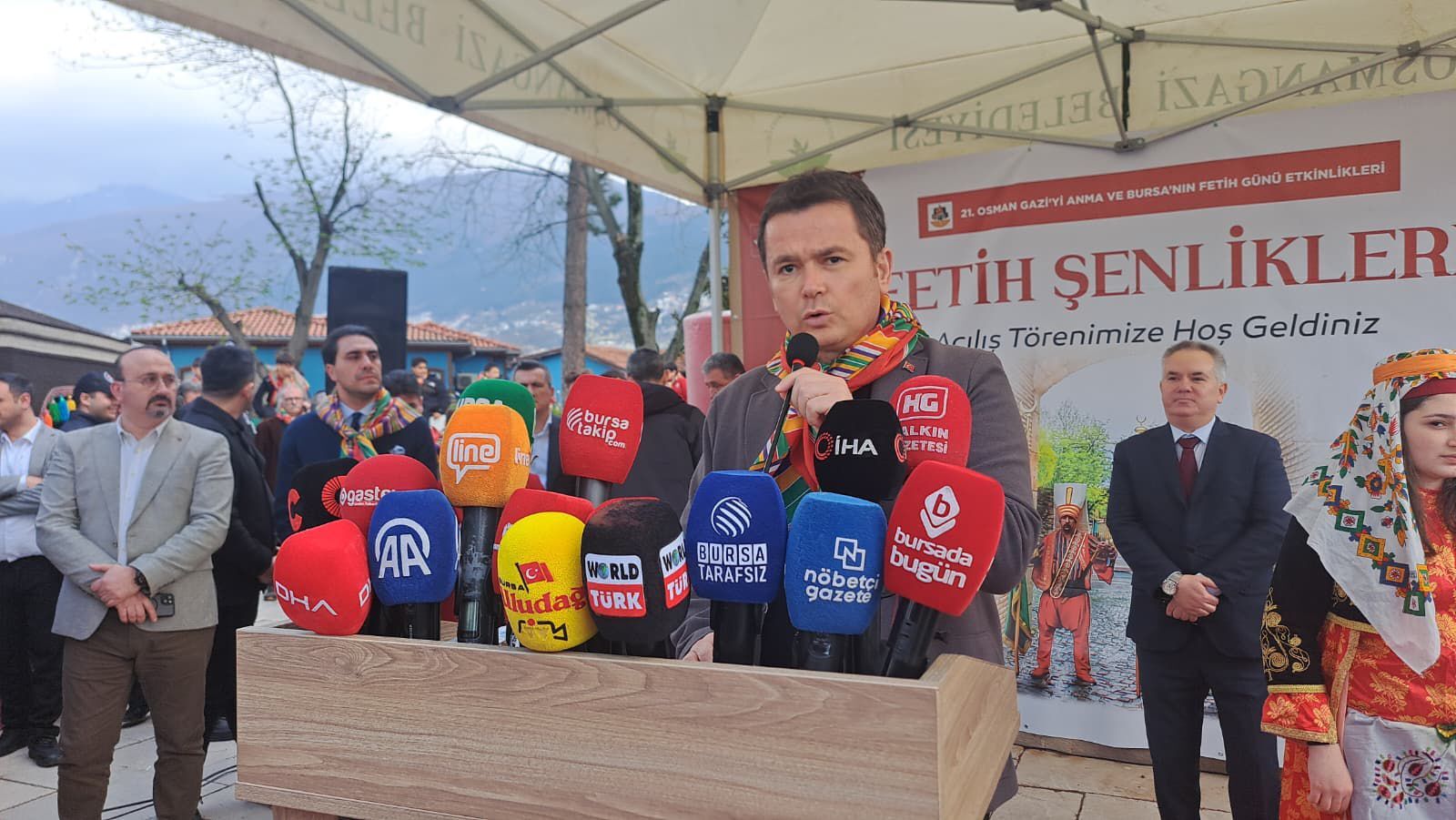 Aydın, Osman Gazi ve Orhan Gazi dönemine atıfta bulunarak, “Bursa’nın fethiyle birlikte bu topraklarda adaletin, barışın ve hoşgörünün temelleri atılmıştır. Fetih sonrası kimseye zulmedilmemiş, isteyenin kalabildiği, isteyenin göç edebildiği bir düzen kurulmuştur” dedi.