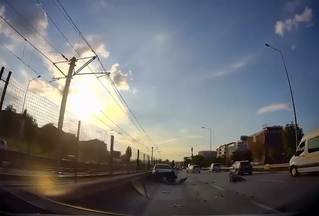 Olay, merkez Nilüfer ilçesi İzmir yolunda meydana geldi. Trafiğin yoğun olduğu anlarda, kayda alınan görüntüler herkesin yüreğini ağzına getirdi. Arkadan gelen aracın durmayacağını fark eden sürücü, kendini sağa doğru attı. O esnada gelen otomobil önüne kattığı araçları, sürüklemeye başladı. Kameralarda 5-6 aracı hurdaya döndüğü kazada, bir motosikletli de ölümden döndü. Araçların altında kalmaktan son anda kurtulan motosikletli, kendini yolun ortasında oturur vaziyette buldu.