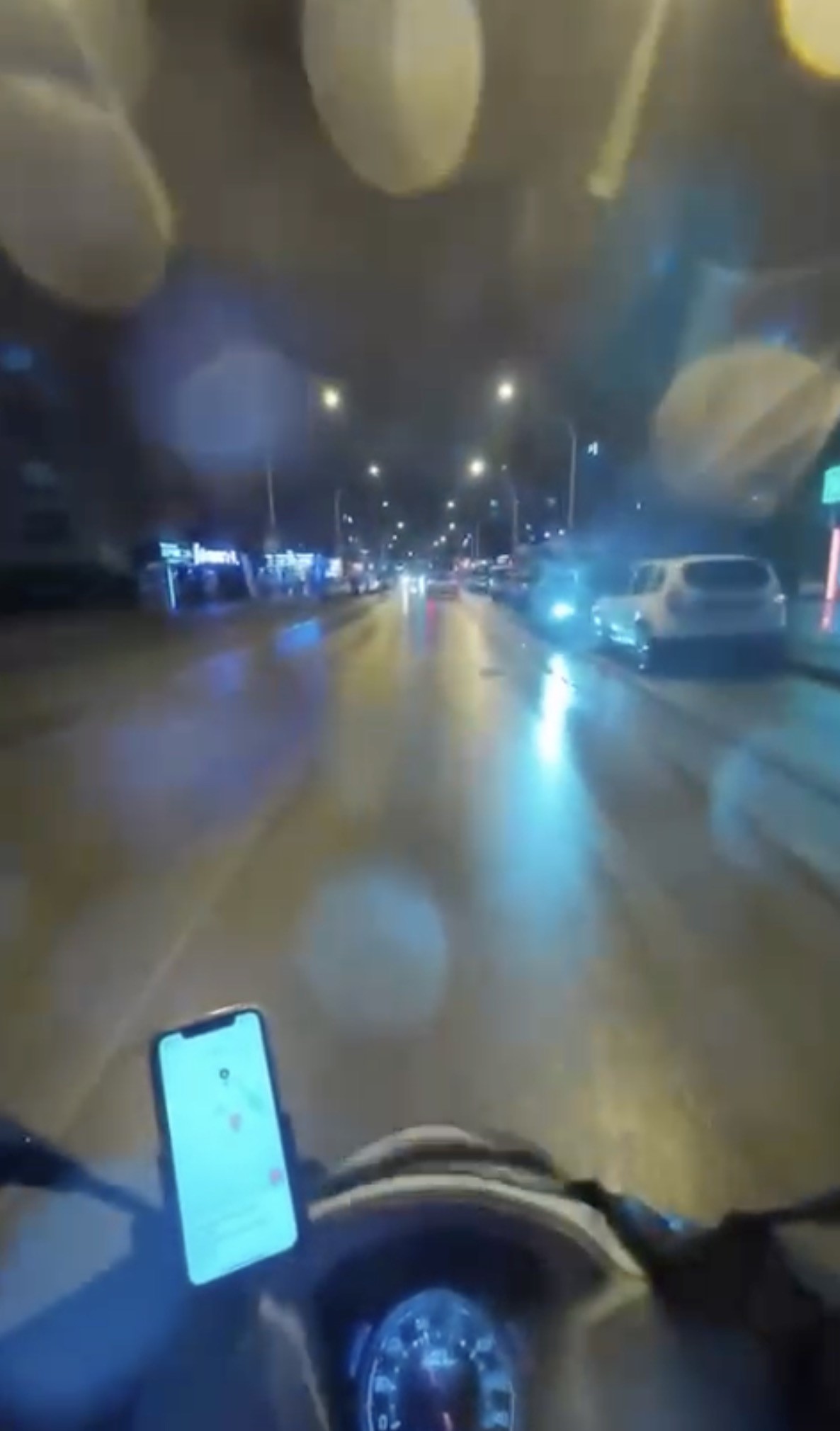Kask kamerası görüntülerinde, cipin aniden yola çıkması, yağışın etkisiyle motosiklet sürücüsünün kontrolü kaybettiği ve panik anları yer alıyor.