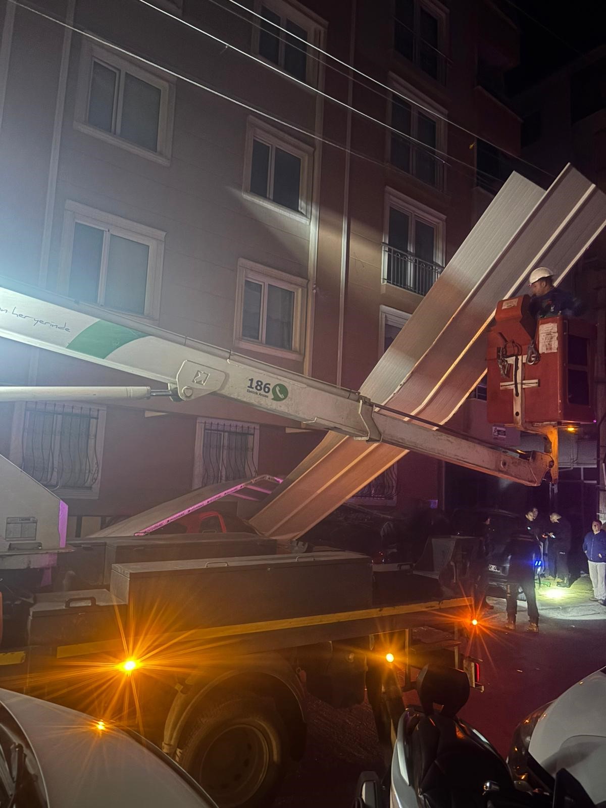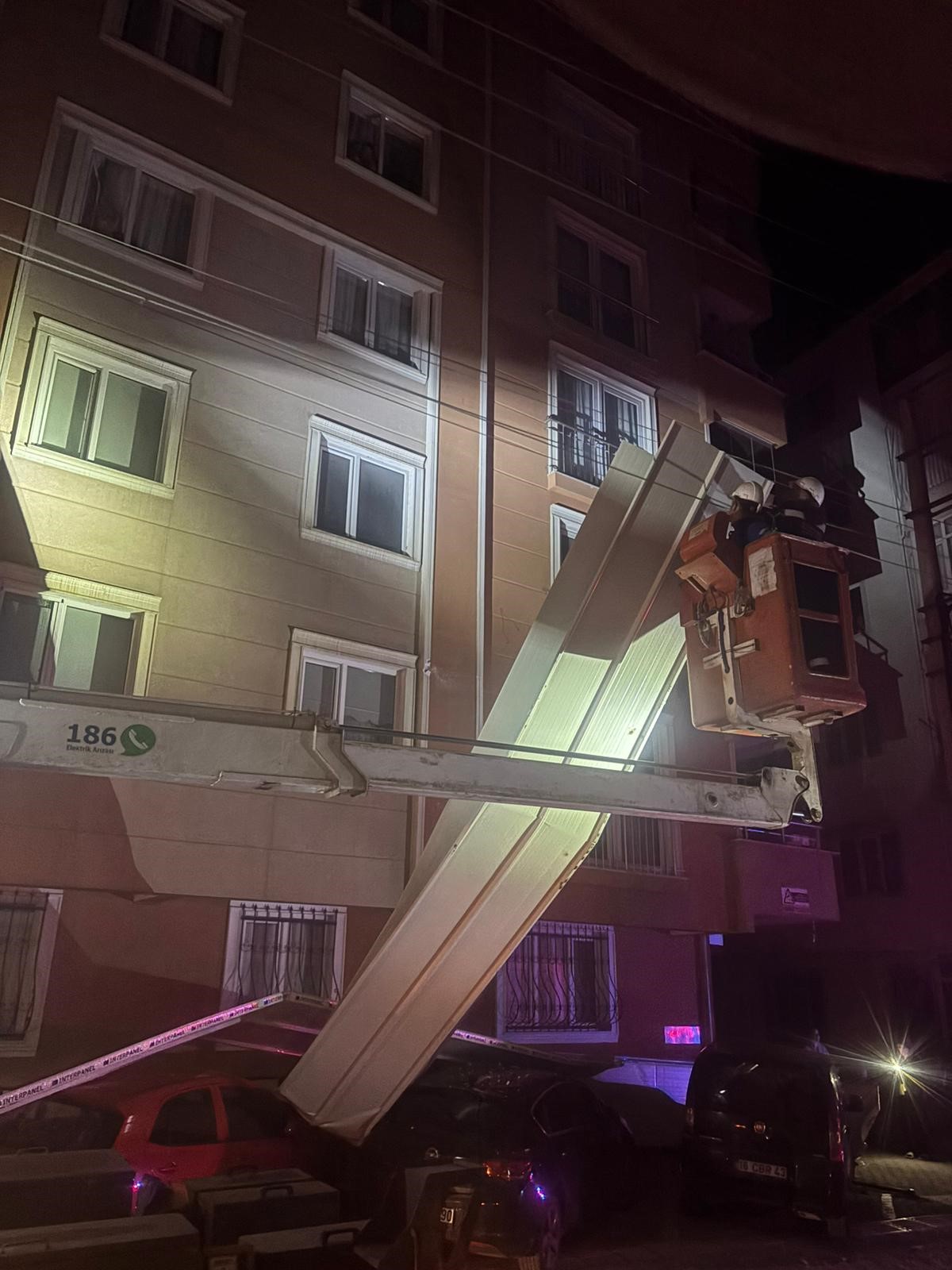 Büyük bir gürültüyle bir apartmanın çatısında bulunan paneller araçların üzerine düştü. 3 aracın zarar gördüğü olayda tellere takılan diğer paneller itfaiye ekipleri tarafından kurtarıldı.