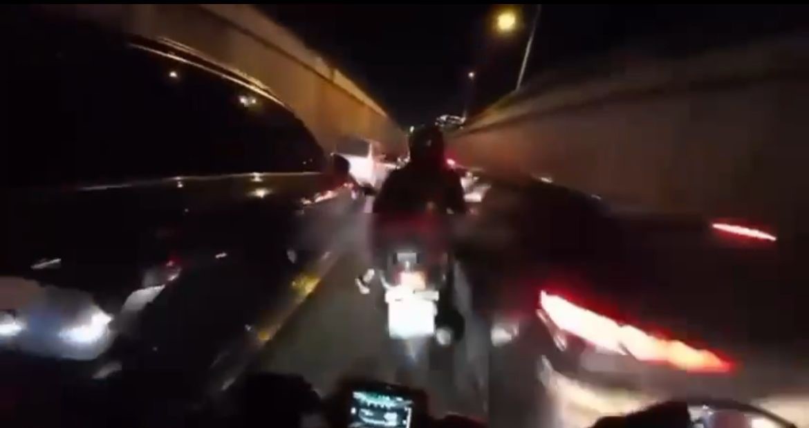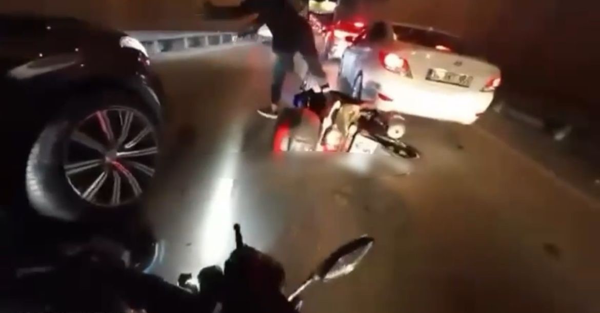 Motosikletiyle durağan trafikte araçların arasında hızla seyrederken iki otomobilin arasında sıkıştı.