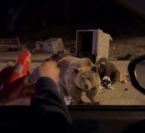 Milli Park yetkilileri de hayvanlara her gün yiyecek bırakıp karınlarını doyuruyor. Ancak bazı vatandaşlar ayı ailesinin yanına gelip yiyecek verirken tehlikeli anlar yaşıyor. Sucuk ziyafeti çektiği anne ayının gazabına uğrayan bir maceracı o anları kayda aldı. Ayının arabaya saldırdığı anlar yürekleri ağıza getirdi.