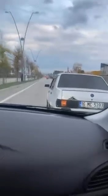 16 MC 5393 plakalı otomobilin sürücüsü ise tartıştığı sürücünün önünü keserek ilerledi. Trafiği de tehlikeye atan sürücünün görüntüsü arkadaki sürücü tarafından saniye saniye kaydedildi.