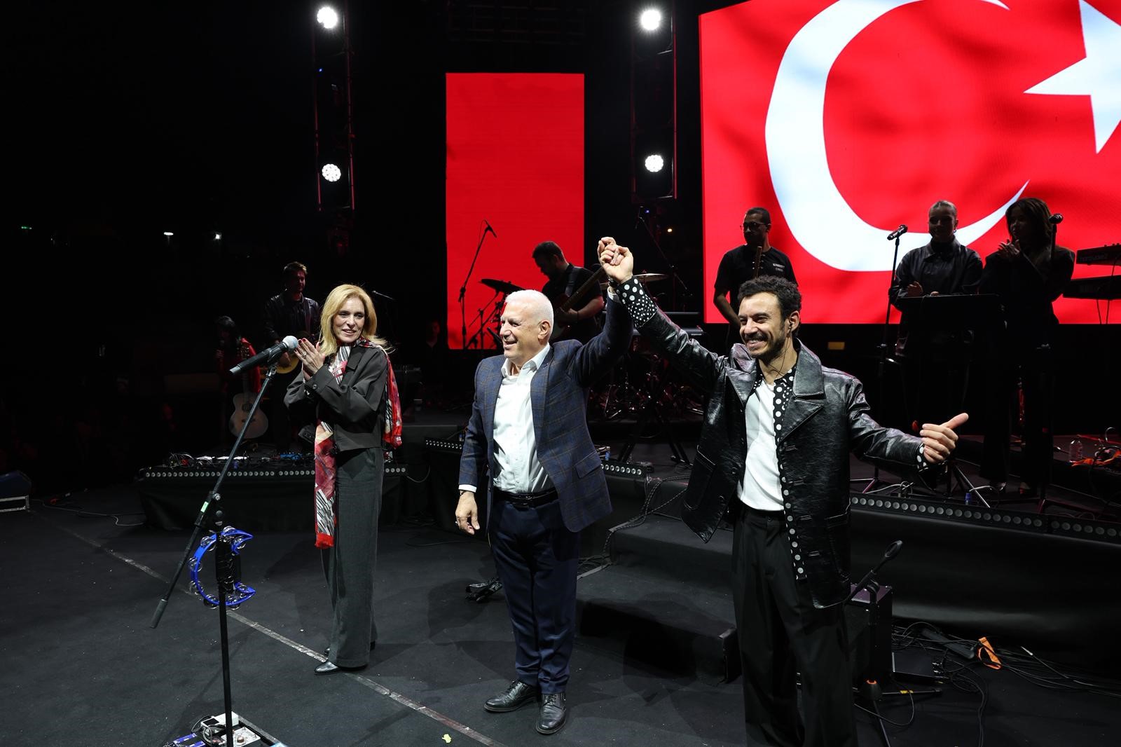 Bursa Büyükşehir Belediye Başkanı Mustafa Bozbey de eşi Seden Bozbey ile birlikte Buray konserine katıldı. Sahneye Türk bayrağı ve Ata posteriyle çıkan Başkan Mustafa Bozbey, alanı doldurarak muhteşem bir görüntü oluşturan vatandaşlara teşekkür etti. Cumhuriyet etkinlikleri kapsamında sahne alan Buray’a da teşekkür eden Başkan Bozbey, "Cumhuriyet’imizin 102. yılını büyük bir coşkuyla kutlamaya devam ediyoruz. Herkesin Cumhuriyet Bayramı’nı kutluyorum. Yaşasın Cumhuriyet!" dedi.