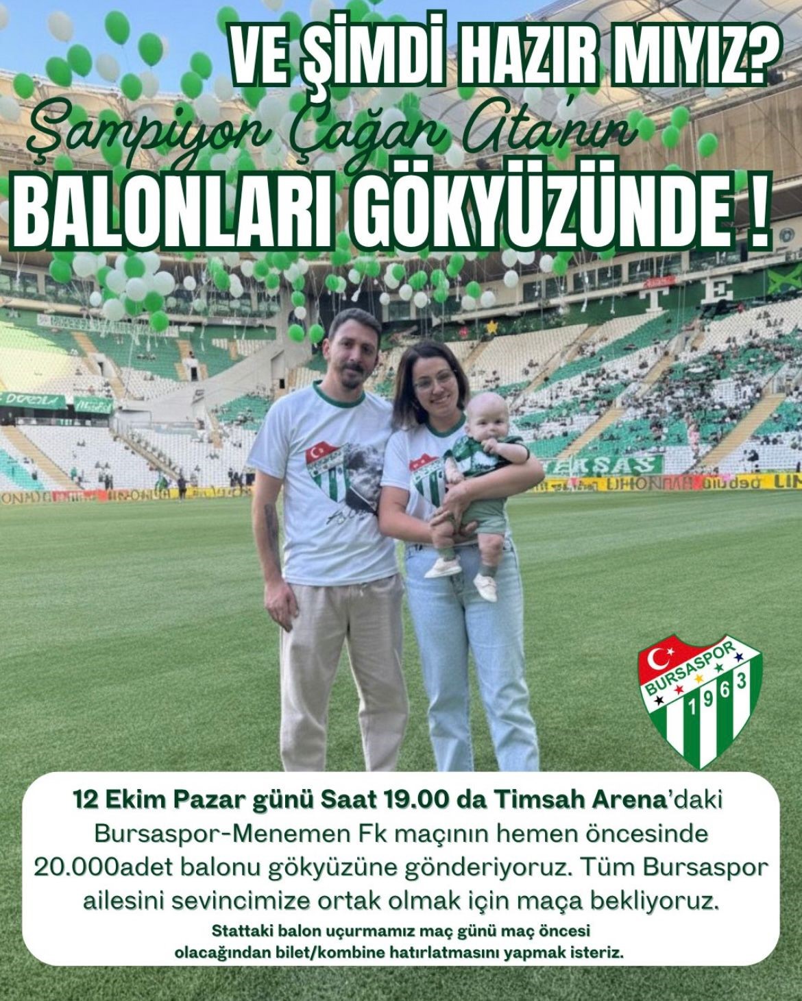 Teksas ve Maraton tribünlerinde gerçekleşecek bu etkinlik için diğer tribünlerinde de mutluluğa ortak olunması için çağrıda bulunuldu. Stadyuma gelecek taraftarların yanlarında yeşil beyaz renkte balon getirmeleri istendi. Bursaspor Başkanı Enes Çelik de Çağan Ata'nın tedavi için verilen destek kampanyasında katkılarıyla büyük rol oynamıştı.