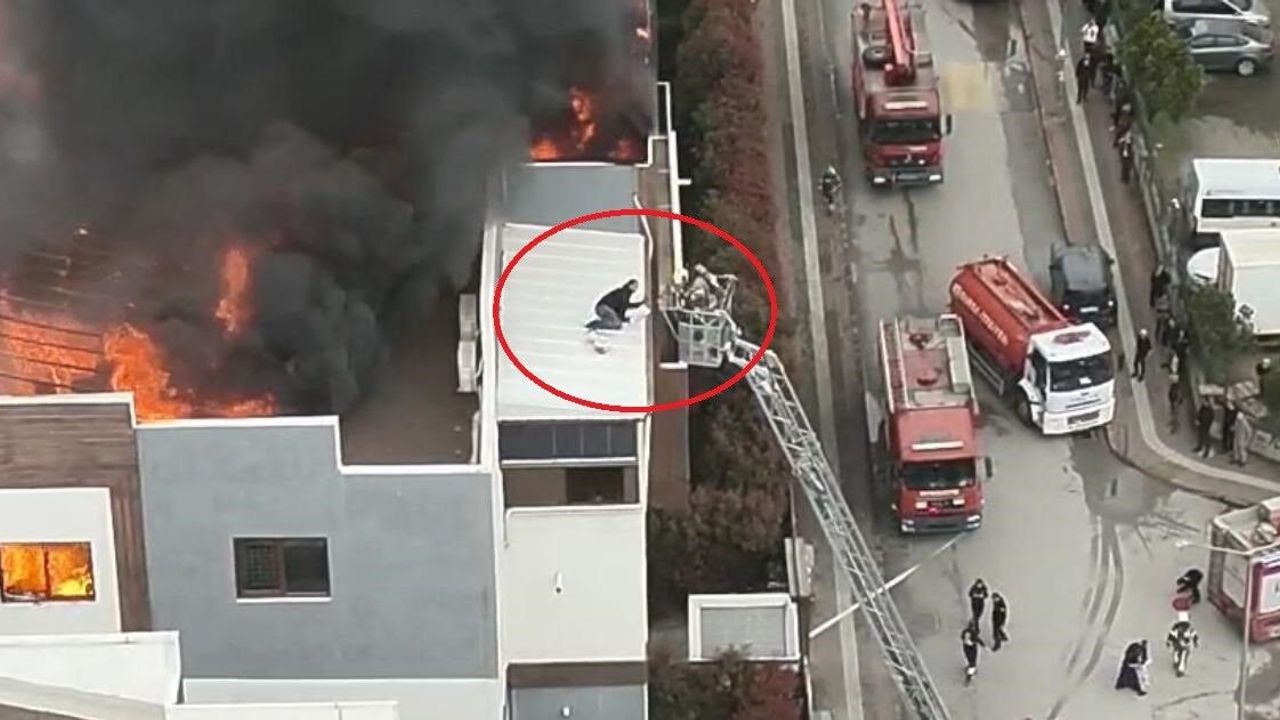 Öte yandan korku dolu anlar dron ile havadan görüntülendi. Görüntülerde çatı katını saran alevler ve gökyüzünü kaplayan yoğun duman dikkat çekti.