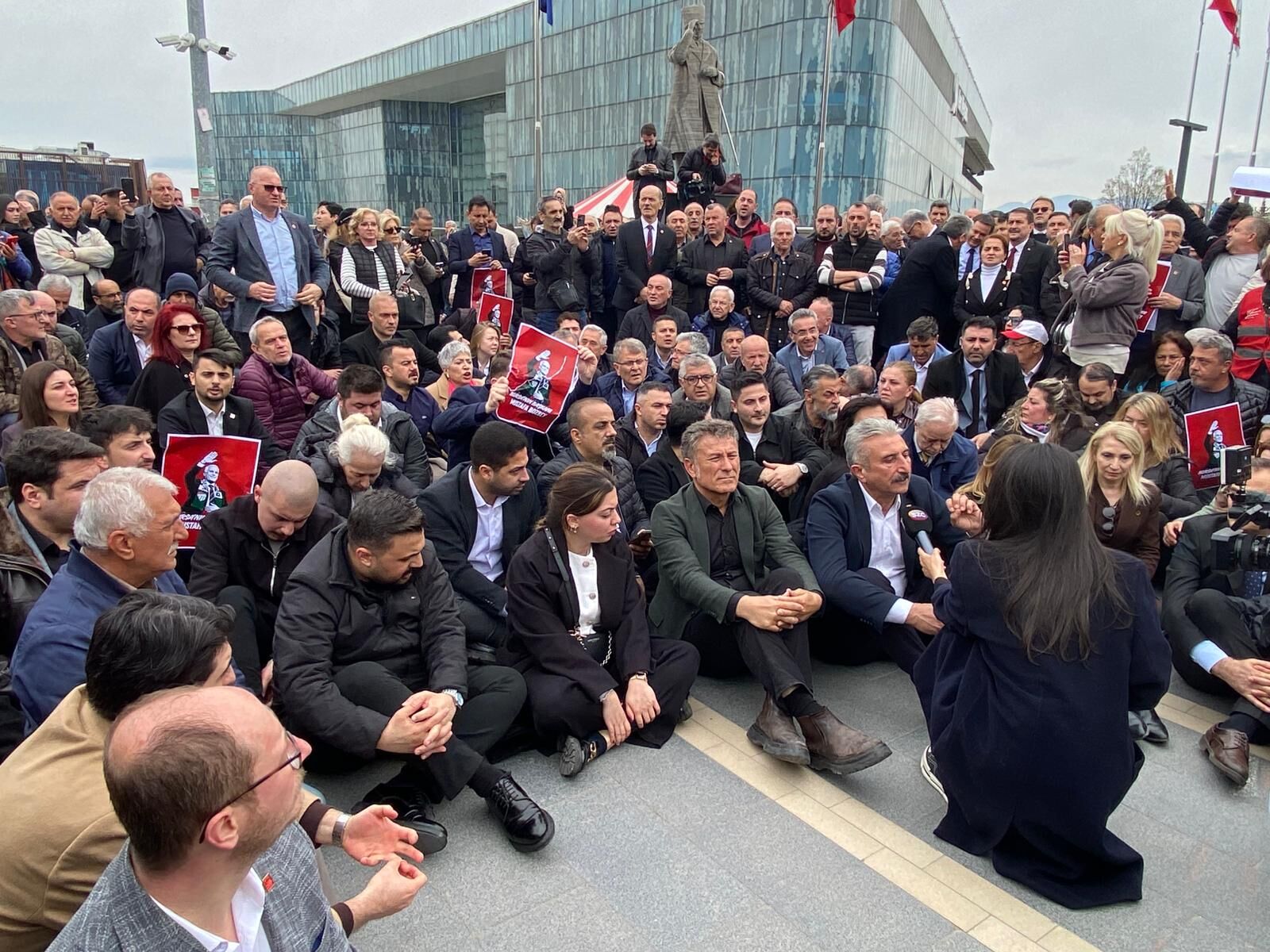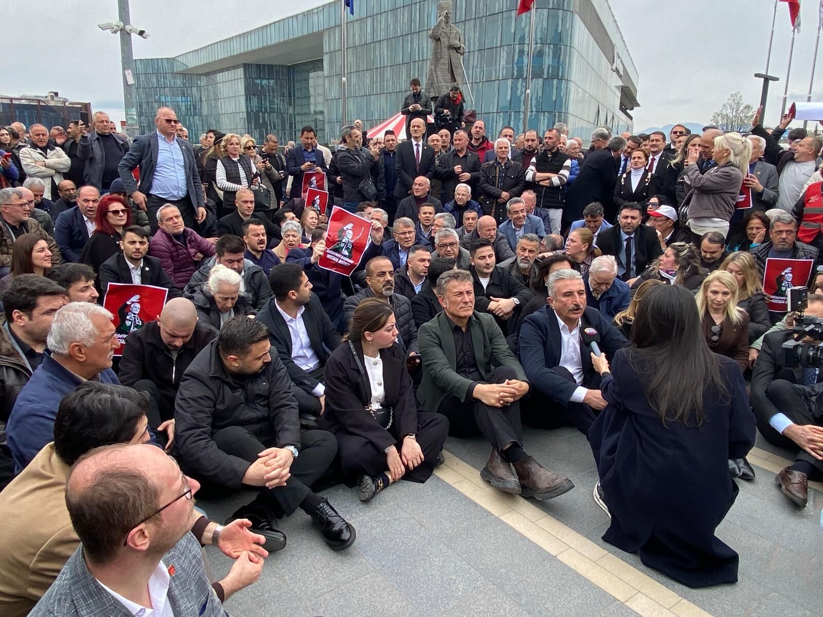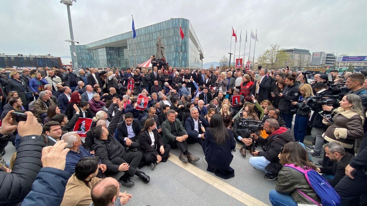 Emniyet güçlerinin sert müdahalesi ardından Bursa'da CHP heyeti İl Binası önünde oturma eylemi gerçekleştiriyor