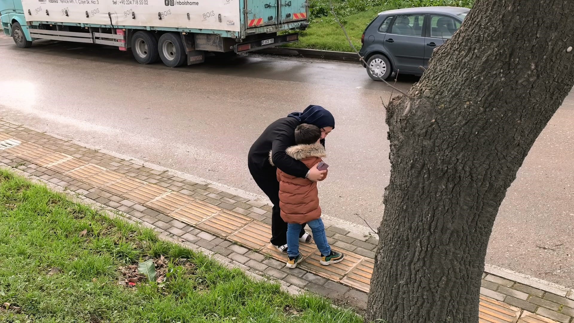 Kazayı yara almadan atlatan küçük çocuk ise olay yerine gelen ablasına sarılarak ağladı. Olayla ilgili polis ekiplerinin tahkikatı sürüyor.