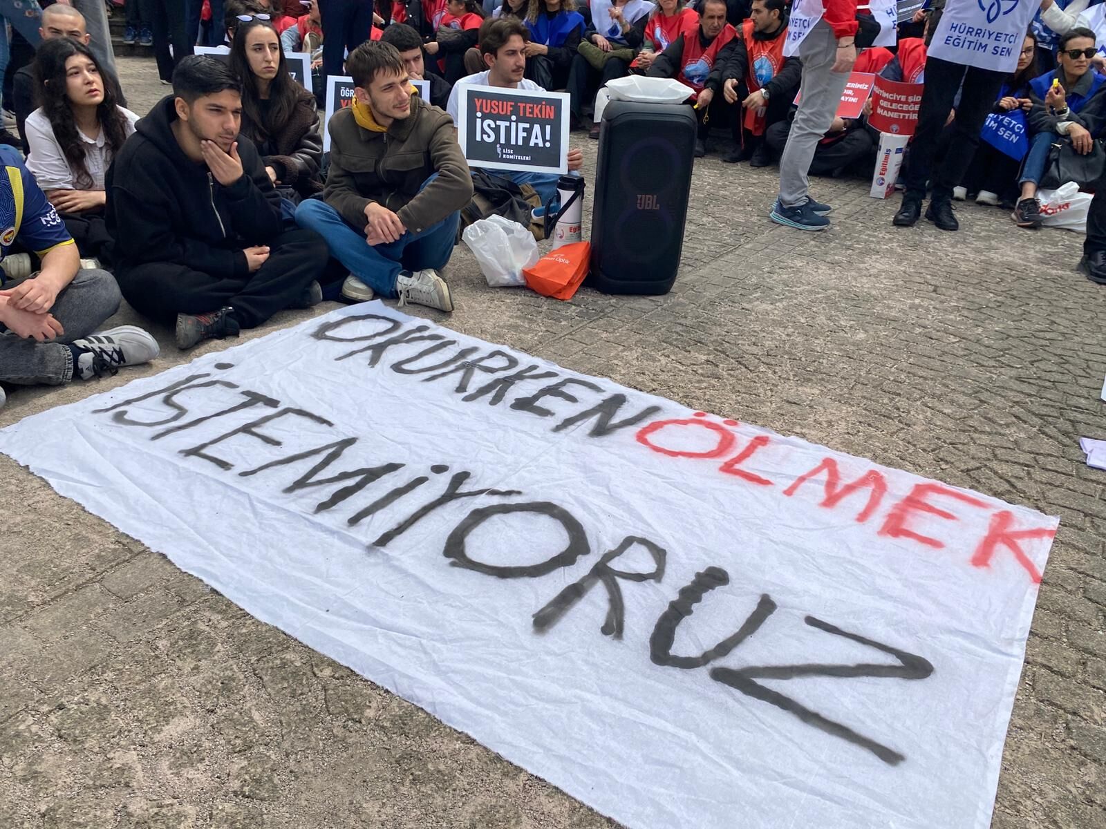 “Okulda ölmek istemiyoruz, başka bir talebimiz yok. Şu an okullarda 15-20 öğrenci var. Yusuf Tekin şunu artık anladın; öğretmen ve öğrenci seni protesto ediyor.”