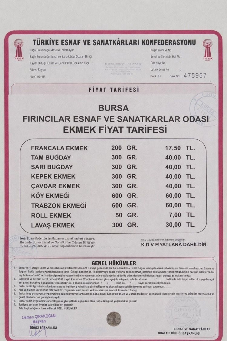 Yapılan toplantının ardından belirlenen yeni fiyat tarifesinin yürürlüğe girdiği öğrenildi. Böylece Bursa’da ekmek fiyatı resmen güncellenmiş oldu.