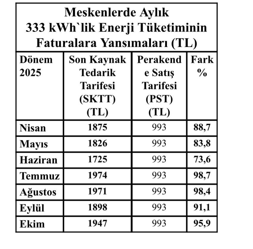 “Spekülatif piyasa dalgalarının otomatik olarak faturaya yansıdığı ve faturanın her ay büyüdüğü bir ortamda, hükümet sözcülerine ‘elektriğe zam yok’ ifadelerini kullanma olanağı bile yaratan bu uygulamaya derhal son verilmelidir.”