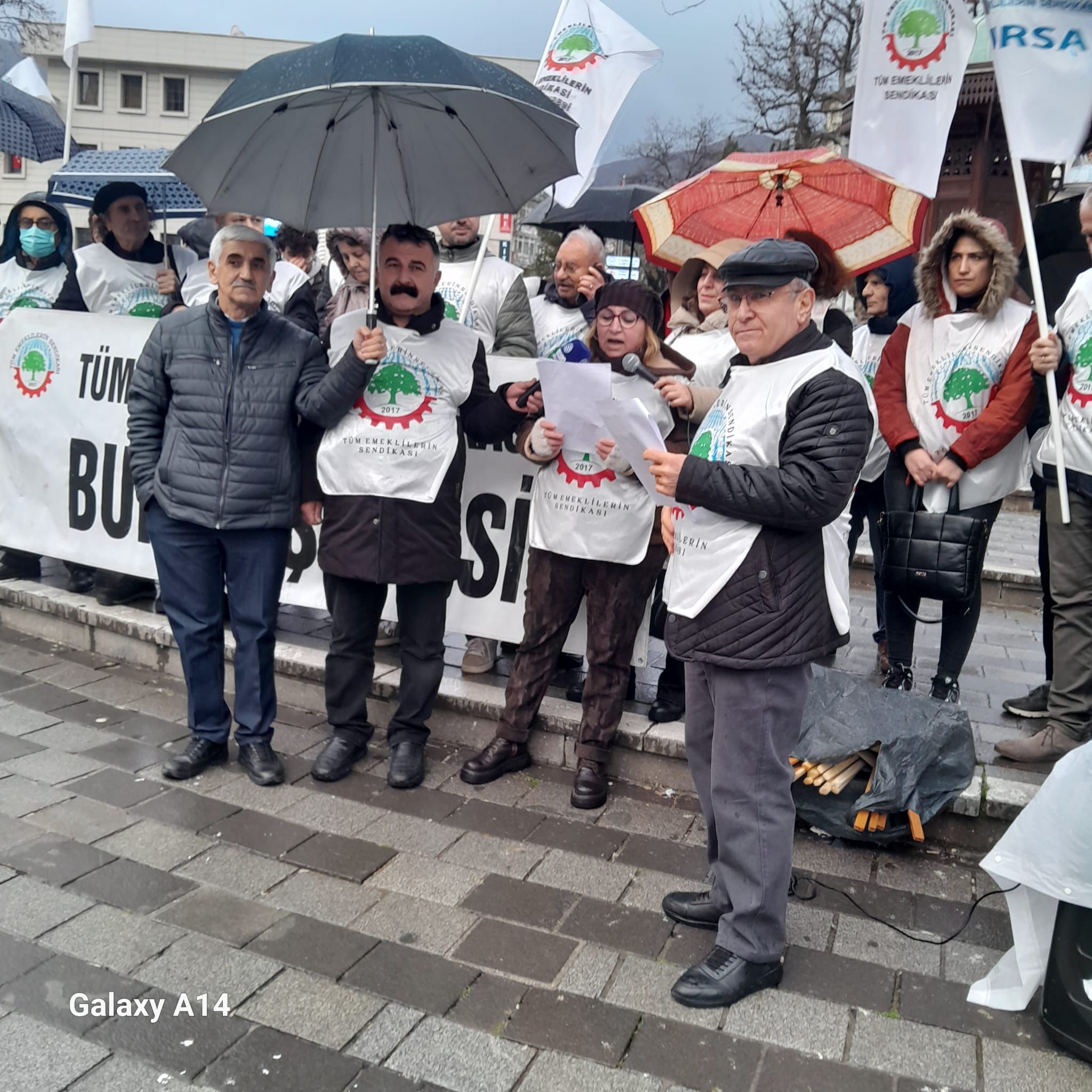 Tüm Emeklilerin Sendikası Bursa Şubesi, 8 Ocak’tan itibaren 12 gün boyunca meydanlarda oturma eylemi gerçekleştirdiklerini açıkladı. Açıklamada, aynı tarihlerde CHP milletvekillerinin de Türkiye Büyük Millet Meclisi’nde, emekli maaş zamlarının belirlendiği 22 Ocak bütçe görüşmeleri sürecinde eş zamanlı eylem yaptığı hatırlatıldı.