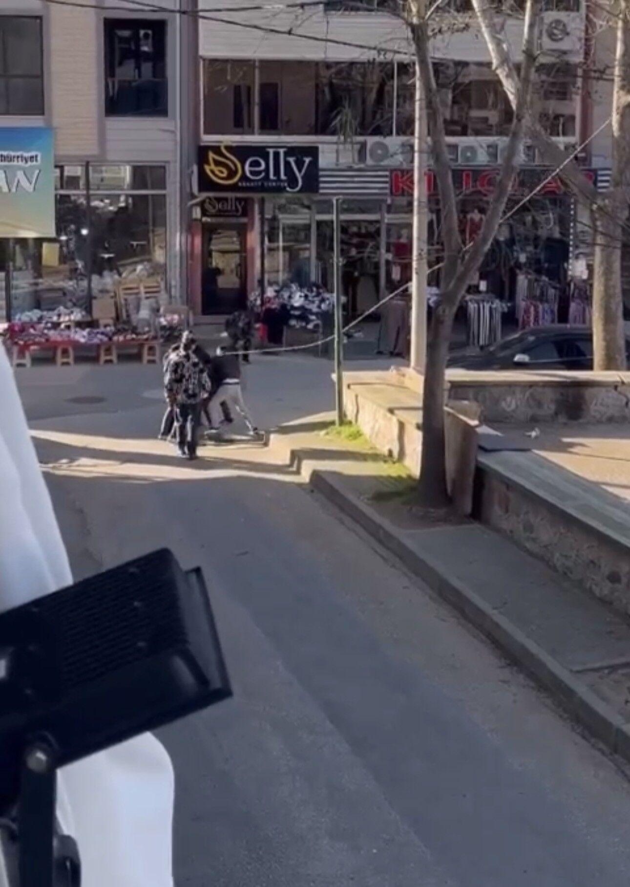 Bursa'nın Osmangazi ilçesinde iki esnaf arasında çıkan kavga sokak ortasında boks ringini aratmadı. O anlar çevredeki vatandaşların cep telefonu kamerasına yansıdı.
