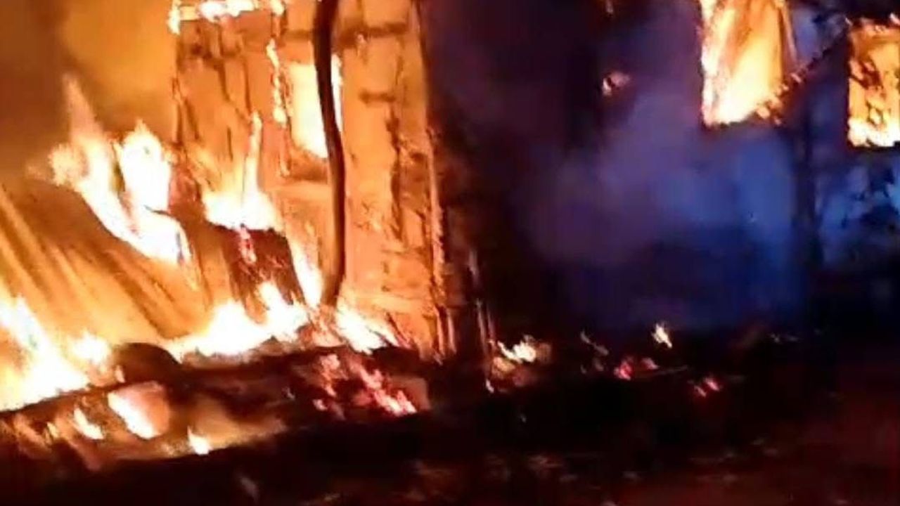 Yangının etkisiyle çevredeki yapılar büyük zarar görürken, alevler gecenin karanlığını adeta aydınlattı.
