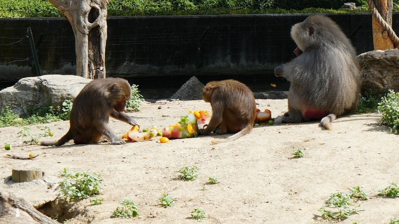 Hayvanat bahçesi çalışanları, inek, eşek, deve, at gibi hayvanları hortumlarla serinletmeye çalışırken, bazı hayvanları ise çeşitli sebze ve meyvelerden oluşan buzlu karışımla serinletmeye çalıştı. Bakıcıları tarafından özenle hazırlanan kokteyller için birbiriyle yarışan maymunlar, sıcak havada serinlemenin keyfini çıkardı.