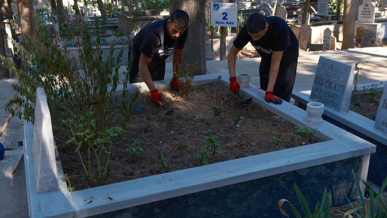 Biri lise mezunu diğeri lise öğrencisi kardeşler, çok sevdikleri anneannelerini 4 ay önce rahatsızlanması sonucu kaybetti. Yanlarında yaşayan anneannelerinin ölümüne üzülen iki kardeş, her gün Karacabey mezarlığına giderek ninelerinin kabristanını temizledi.