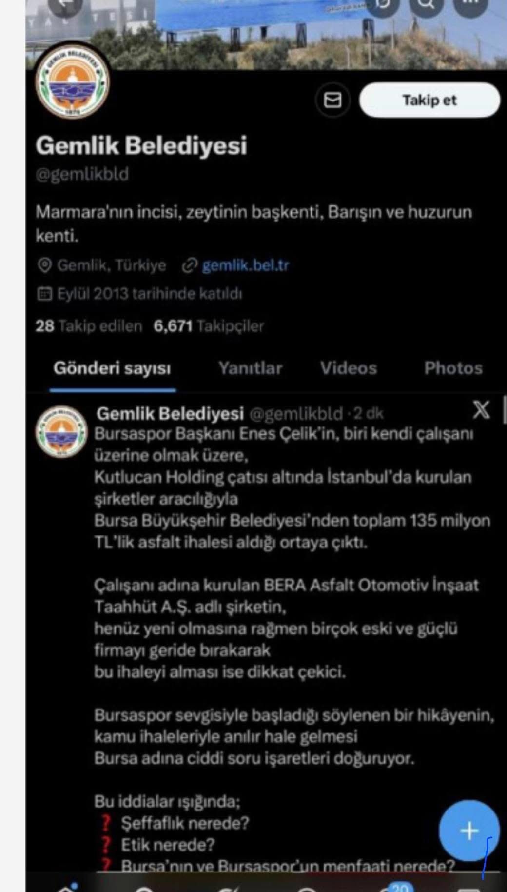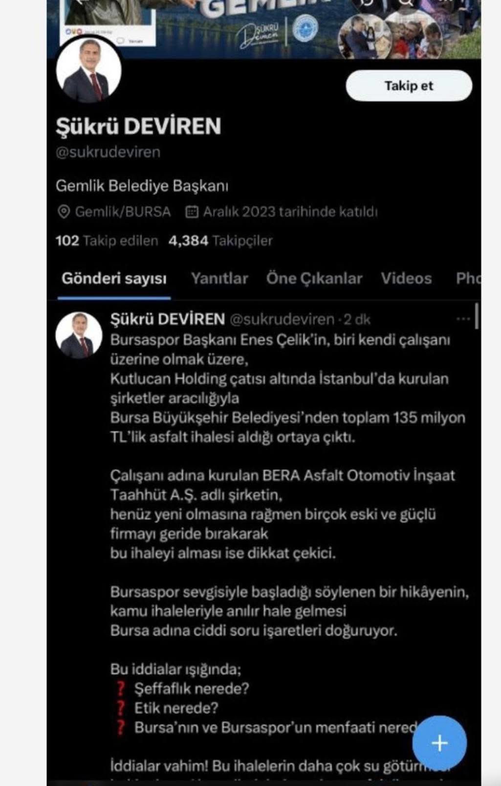 Benzer şekilde Gemlik Belediyesi ve Gemlik Belediye Başkanı Şükrü Deviren adına açılmış veya ele geçirilmiş hesaplardan yapılan paylaşımların da gerçek dışı ve sahte olduğu duyuruldu.