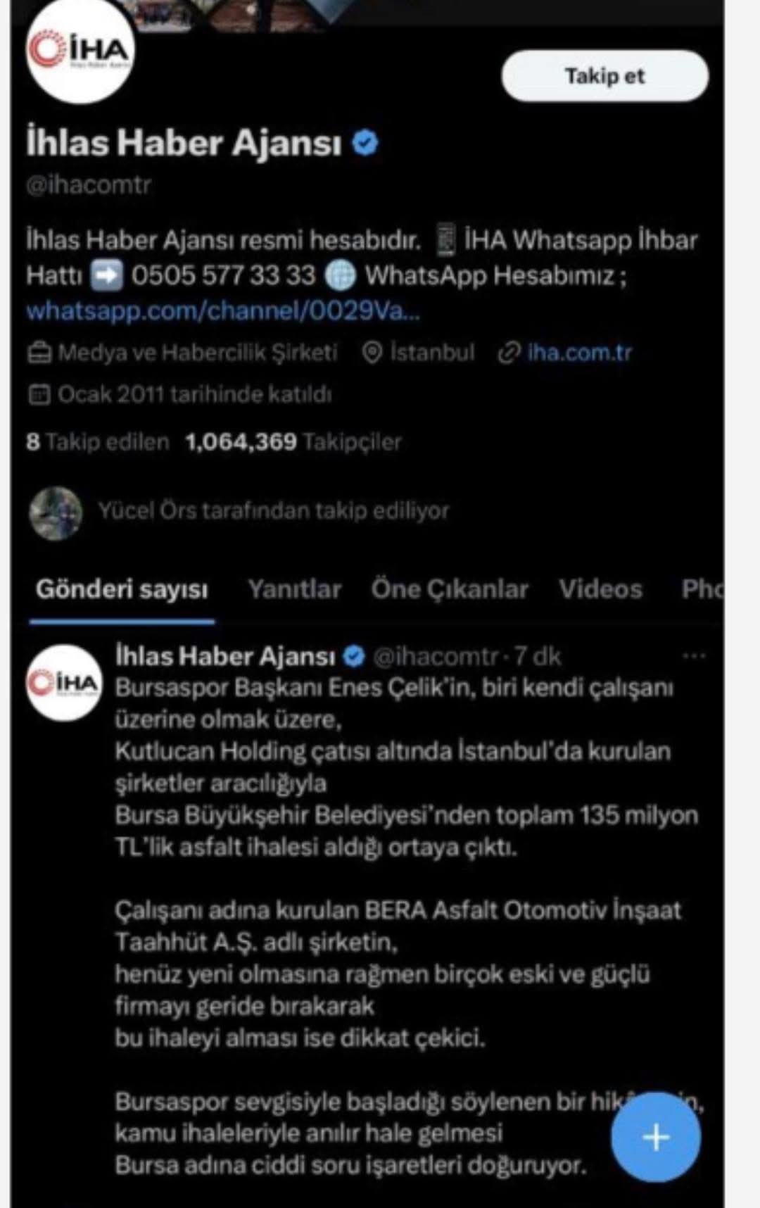 Osmangazi Belediye Başkanı Erkan Aydın, resmi hesabından yaptığı açıklamada; X platformunda son dönemde artan sahte hesap saldırıları nedeniyle profesyonel bir firmayla çalışıldığını, ancak bu süreçte yetki dışı paylaşımların tespit edildiğini belirterek kamuoyunu bilgilendirdi.