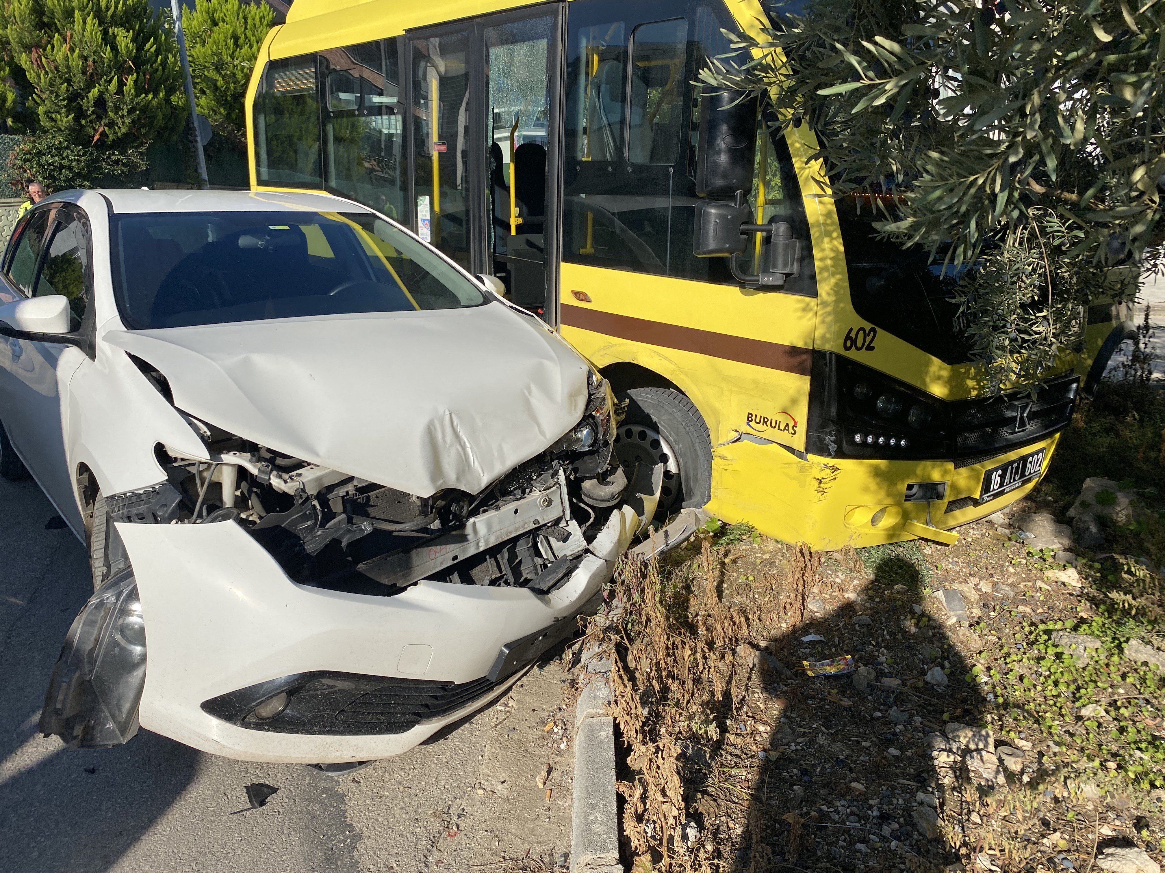 Mudanya ilçesi Siteler Mahallesi’nde saat 10.15’te meydana gelen trafik kazası, bölgede paniğe yol açtı. Bilim Caddesi’nden ilerleyen 2GH hattına bağlı 16 ATJ plakalı Burulaş otobüsü, Efeler Caddesi yönünden gelen 16 UAH plakalı otomobille çarpıştı. Çarpışmanın şiddetiyle her iki araç savrularak yol kenarında güçlükle durabildi.