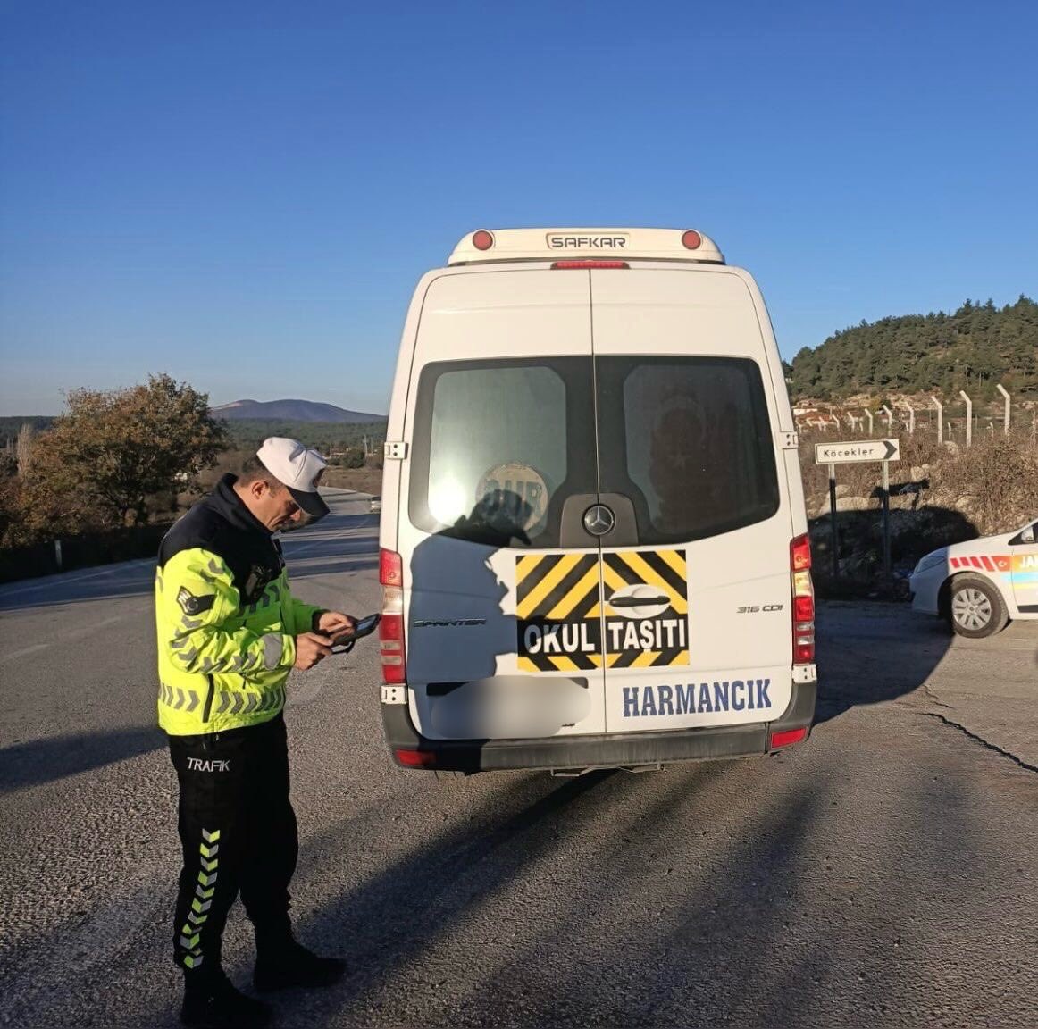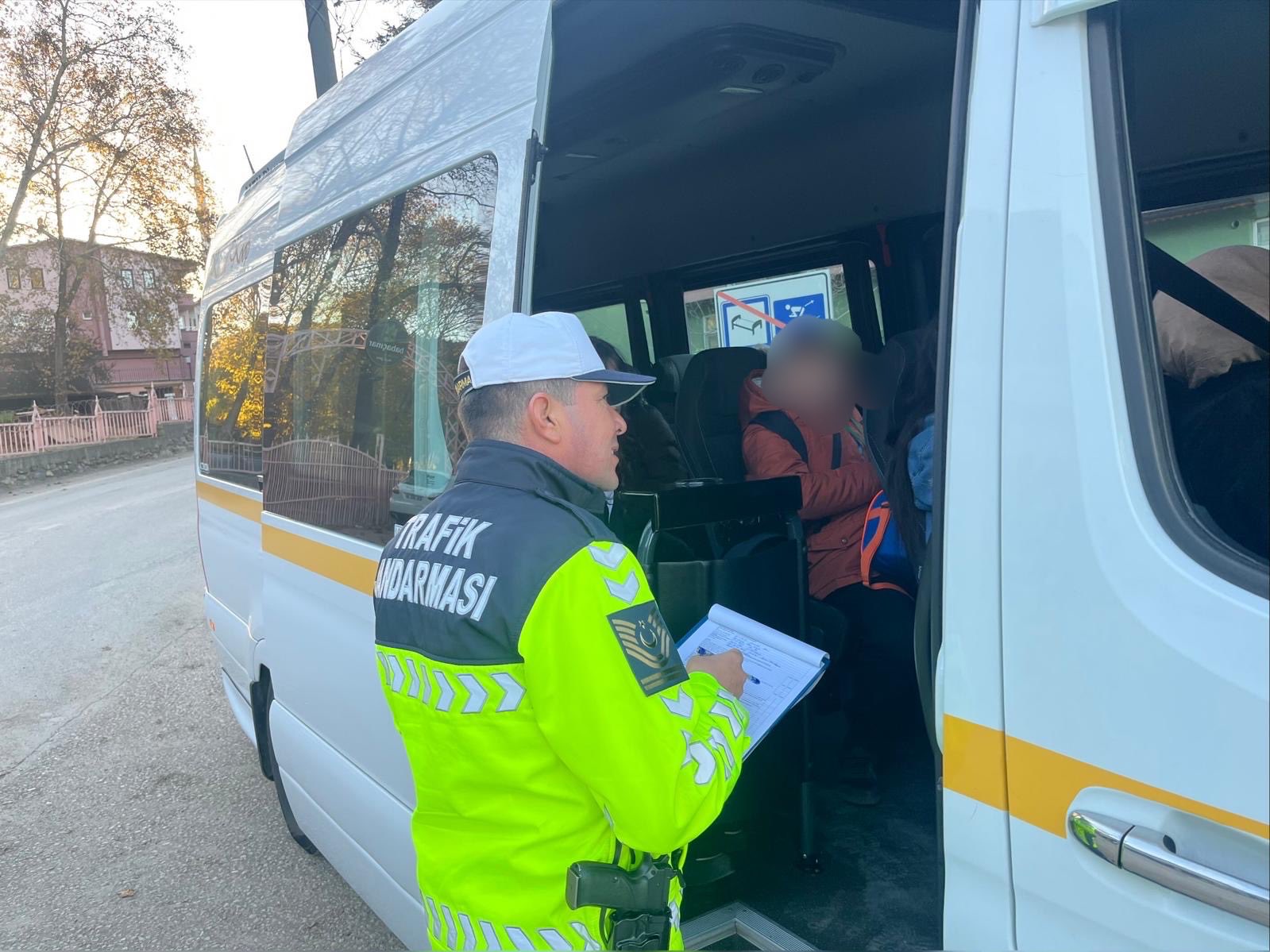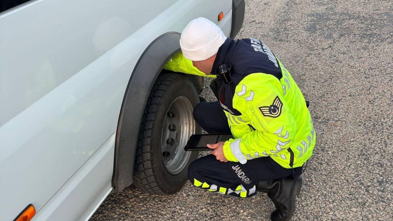 Denetimler sırasında jandarma personelinin servis araçlarının lastiklerinden ışıklı uyarı sistemlerine kadar pek çok noktayı titizlikle kontrol ettiği görüldü.