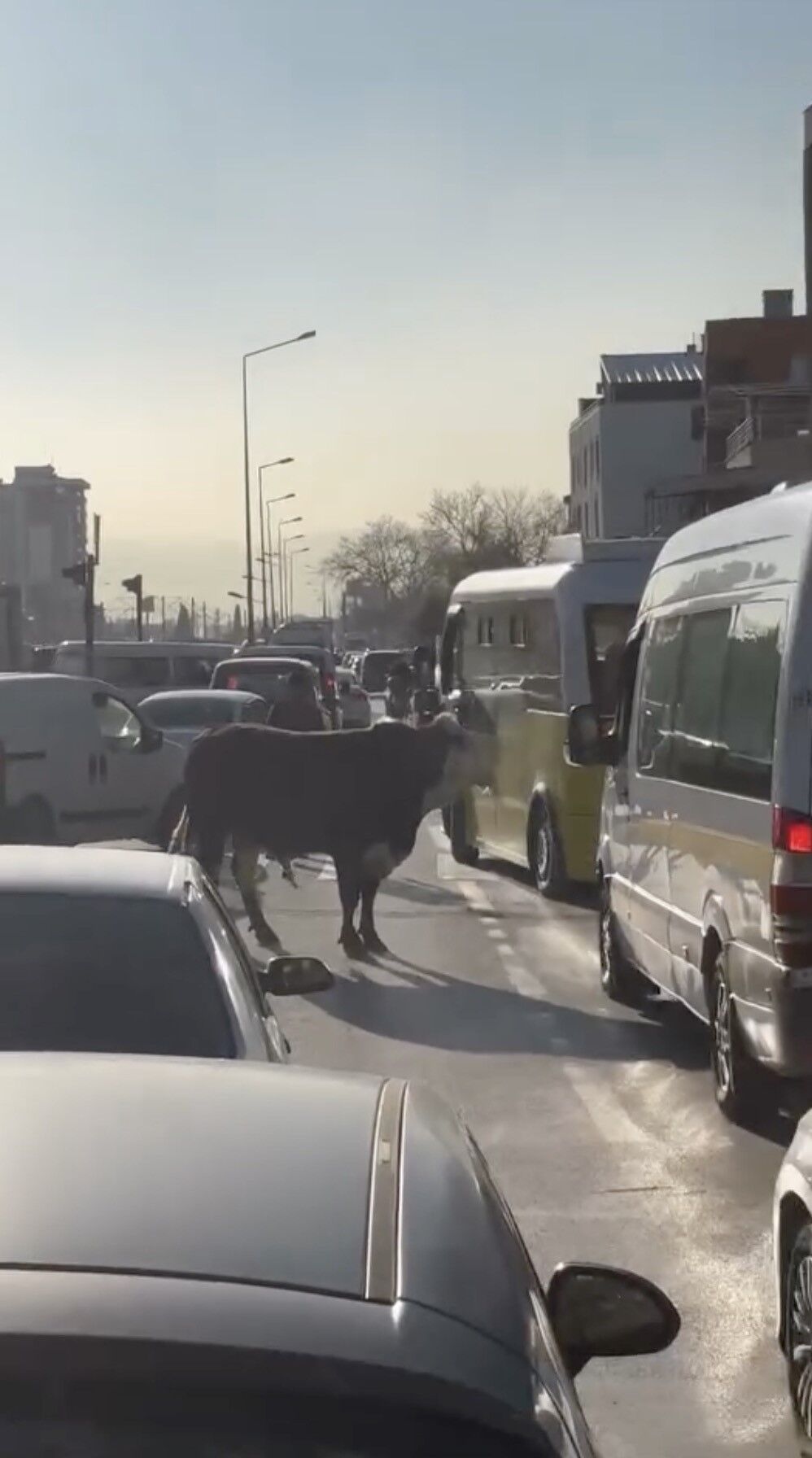 Bursa'nın Yıldırım ilçesinde bir çiftlikten kaçan boğa, Ankara Yolu üzerinde kilometrelerce koşarak trafiği birbirine kattı. Boğa, sahibinin ve çevredeki vatandaşların müdahalesiyle güçlükle yakalandı.