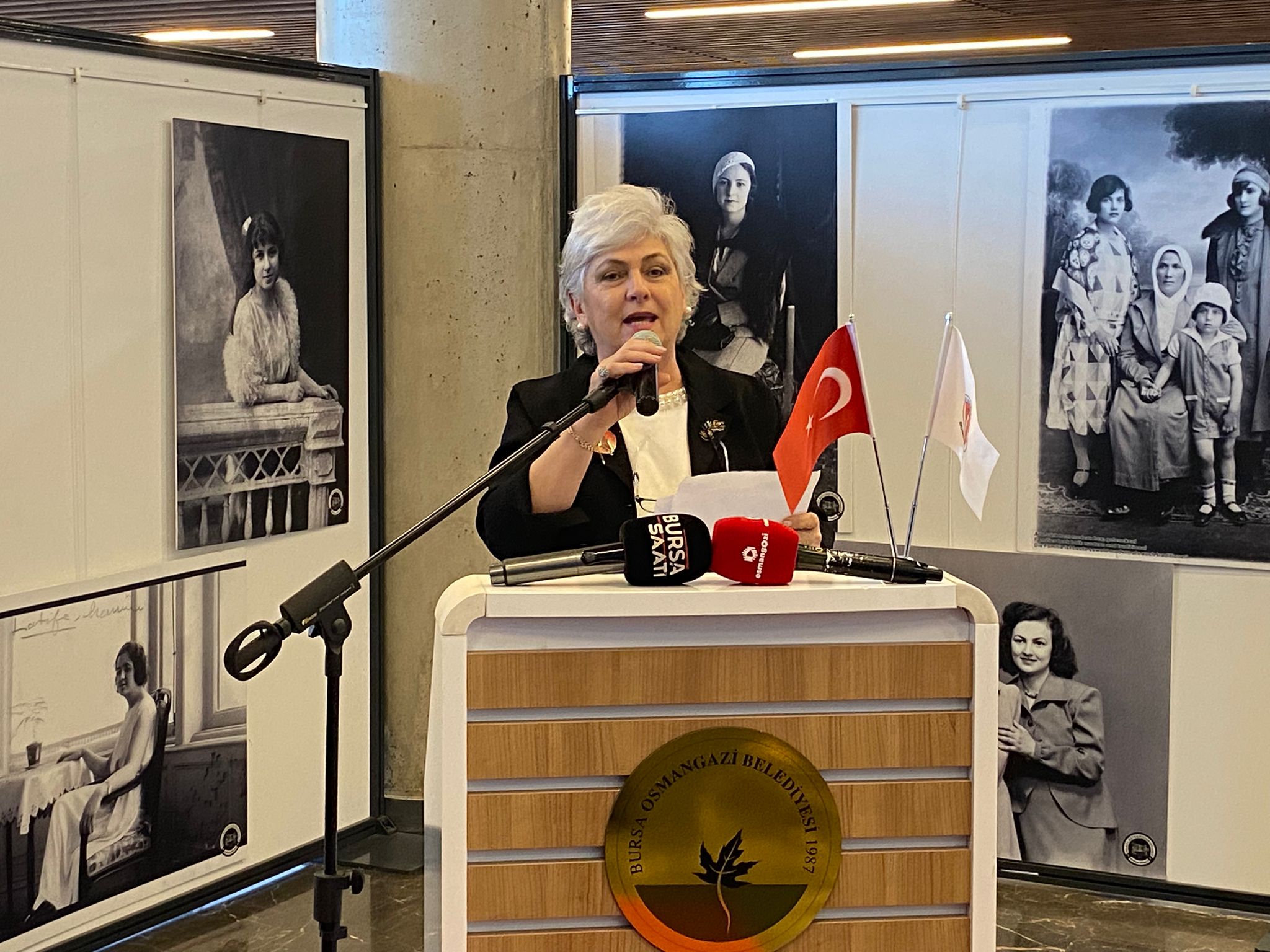 “Haremden Özgürlüğe Türk Kadının Bağımsızlık Öyküsü” adlı serginin açılışında konuşan TKB İzmir Şubesi Yönetim Kurulu Başkanı Sevtap Şirin: