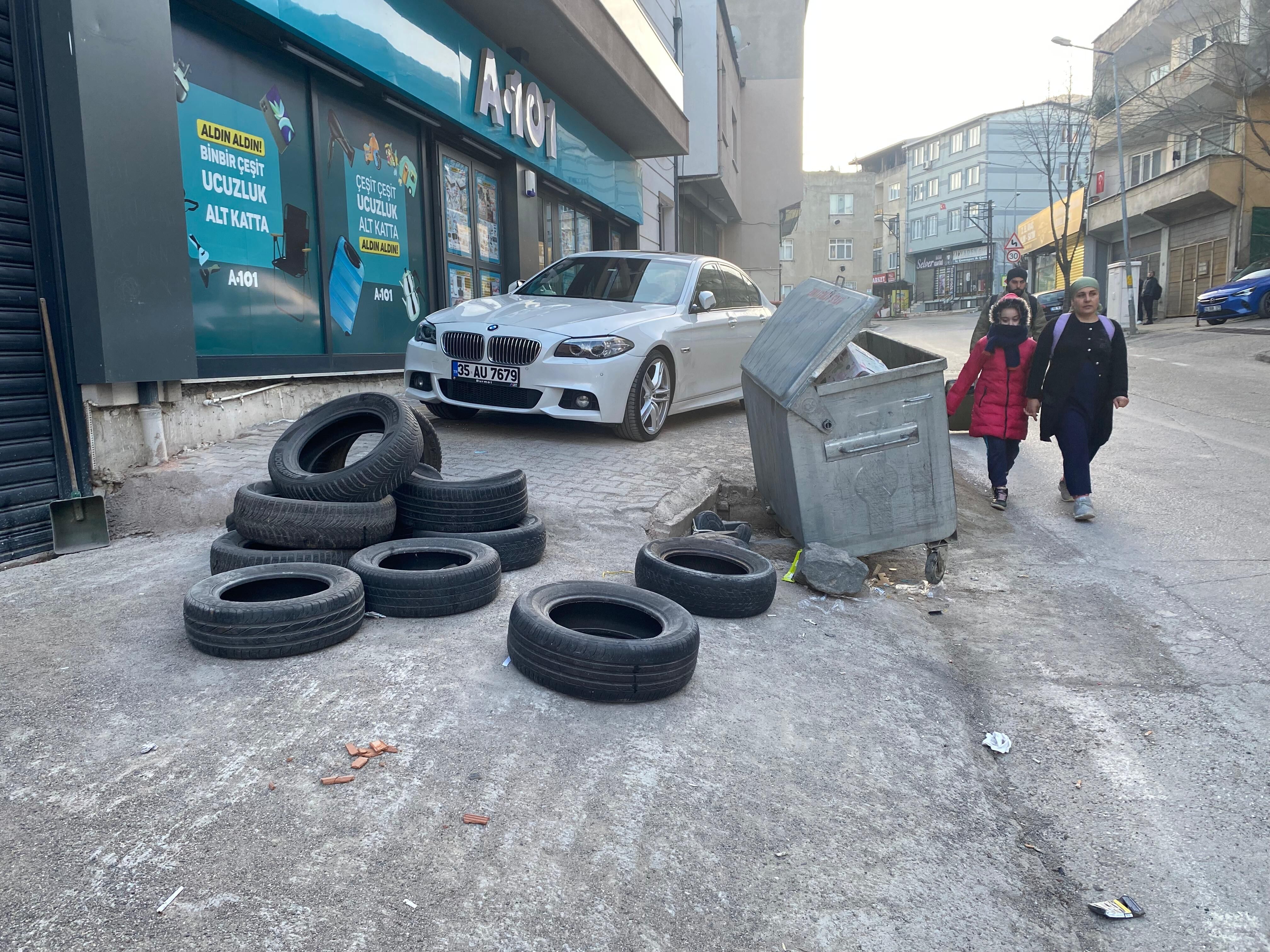 Vatandaşların iddiasına göre bazı işletmeler kaldırıma lastik ve çeşitli malzemeler bırakırken, otopark eğimleri ve çöp konteynerleri de yaya geçişini büyük ölçüde engelliyor. Ayrıca araçların kaldırıma park edilmesi, yürüyüş alanını daha da daraltıyor.