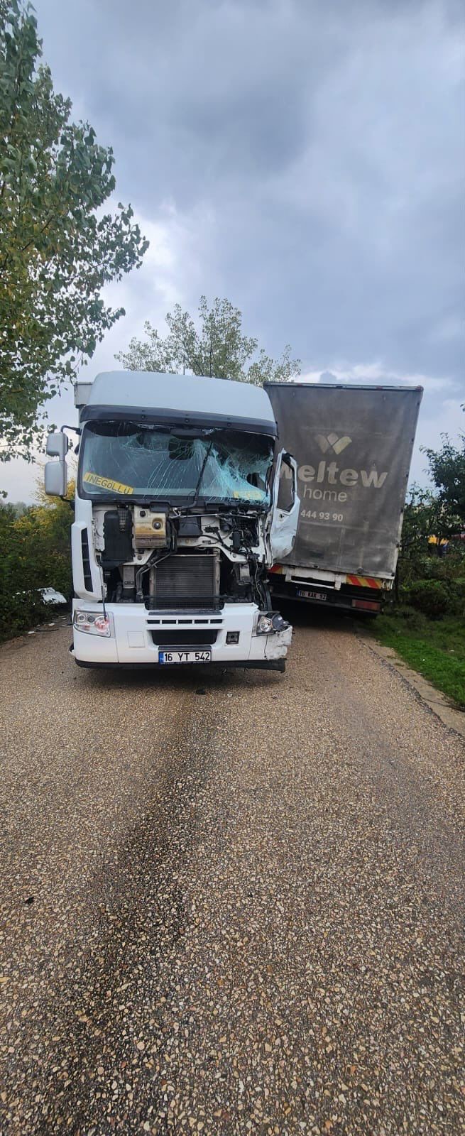 Edinilen bilgiye göre, kaza saat 09.30 İnegöl’ün Yeniceköy Mahallesi Ova Yeniceköy Caddesinde meydana geldi. Yol üzerinde seyir halinde olan Recep S.(30) yönetimindeki 16 YT 542 plakalı kamyon ile karşı yönden gelen sürücü Emrullah B.(39) yönetimindeki 16 KAK 52 kamyon daralan yolda kafa kafaya çarpıştı. Kamyon sürücüsü Emrullah B.(39) kabinde sıkıştı. Kaza yerine 112 jandarma ve itfaiye arama kurtarma ekipleri sevk edildi. Sıkışan sürücü araçtan çıkarılarak Ambulansla İnegöl Devlet Hastanesine kaldırıldı.