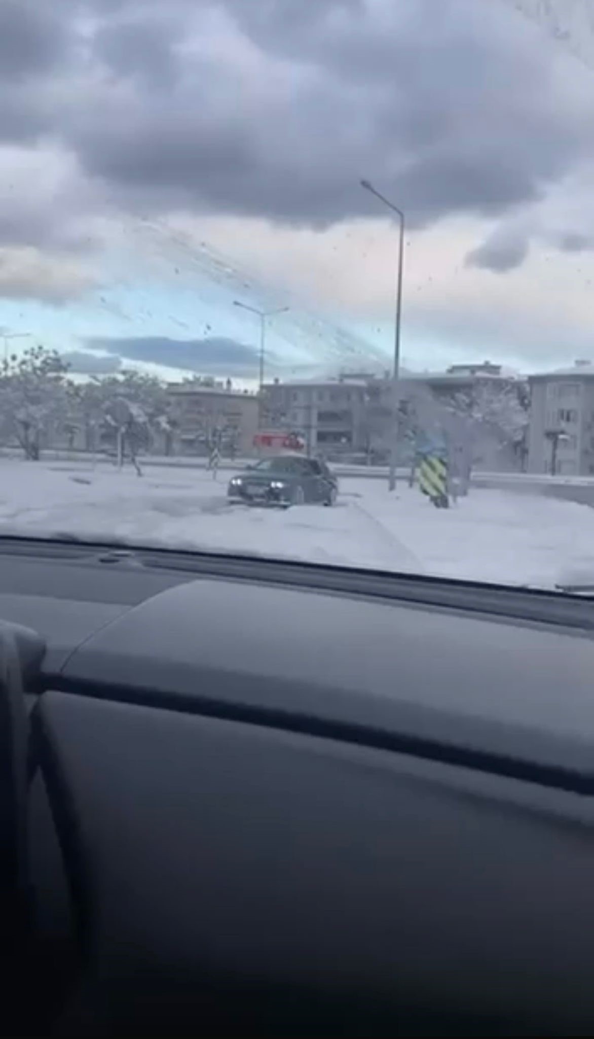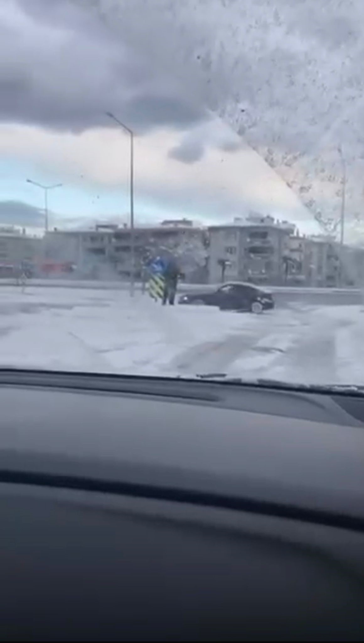 Kar yağışını fırsat bilen bir sürücü, otomobiliyle kavşakta drift atarak trafik güvenliğini hiçe saydı.