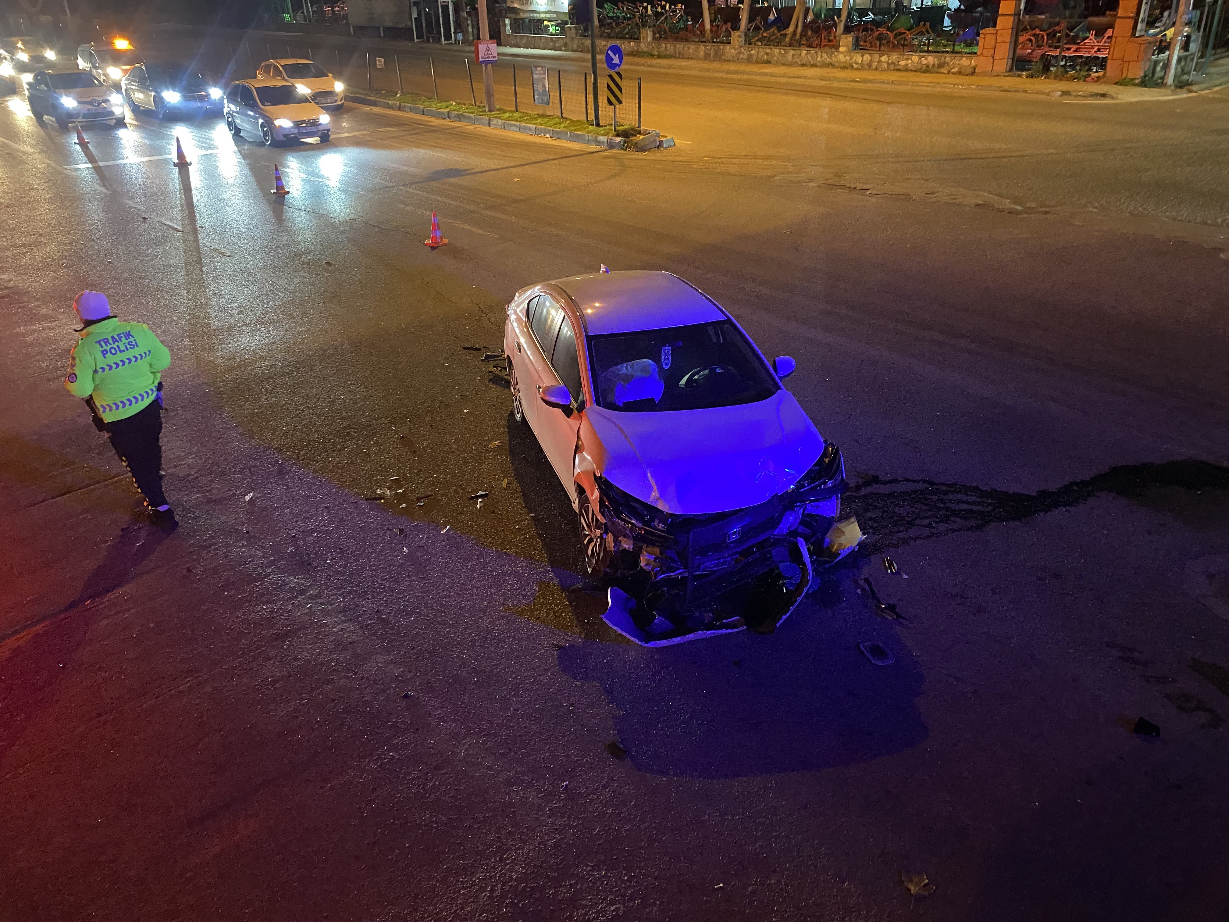 Olay, Bursa’nın Mudanya ilçesinde saat 22.15 sıralarında meydana geldi. Edinilen bilgilere göre, Metin A. (23) idaresindeki 06 DJ 0328 plakalı otomobil, Mudanya’dan Bursa istikametine seyir halindeyken, kavşakta "sola dönülmez" levhasına rağmen sola dönüş yaptı. Bu sırada Bursa istikametinden Mudanya yönüne ilerleyen Kadir M. (45) yönetimindeki 16 BJN 078 plakalı araçla kavşak içerisinde çarpıştı.