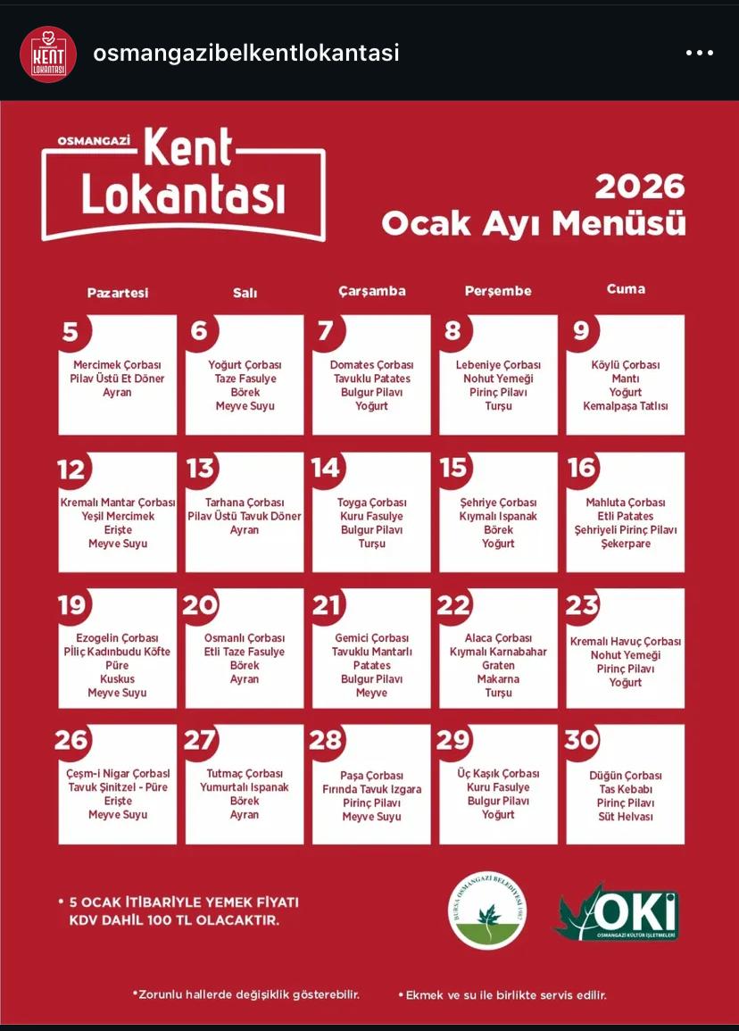 Bursa’da 2026 yılı ile birlikte belediye kent lokantalarında fiyat artışları dikkat çekici seviyelere ulaştı. Nilüfer, Gemlik ve Osmangazi belediyelerine bağlı lokantalarda, yüzde 25 oranında zam uygulanarak yemek fiyatları 100 TL’ye yükseltildi. Zam kararı, özellikle ilçelerde yaşayan vatandaşlar ve düzenli olarak kent lokantalarını kullananlar tarafından yakından takip ediliyor.