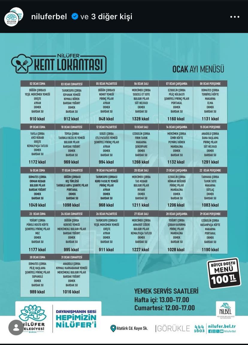 Nilüfer Kent Lokantası’nda dört çeşit yemek fiyatı artık 100 TL olarak uygulanırken, Gemlik ve Osmangazi’de de benzer artışlar kayda geçti.