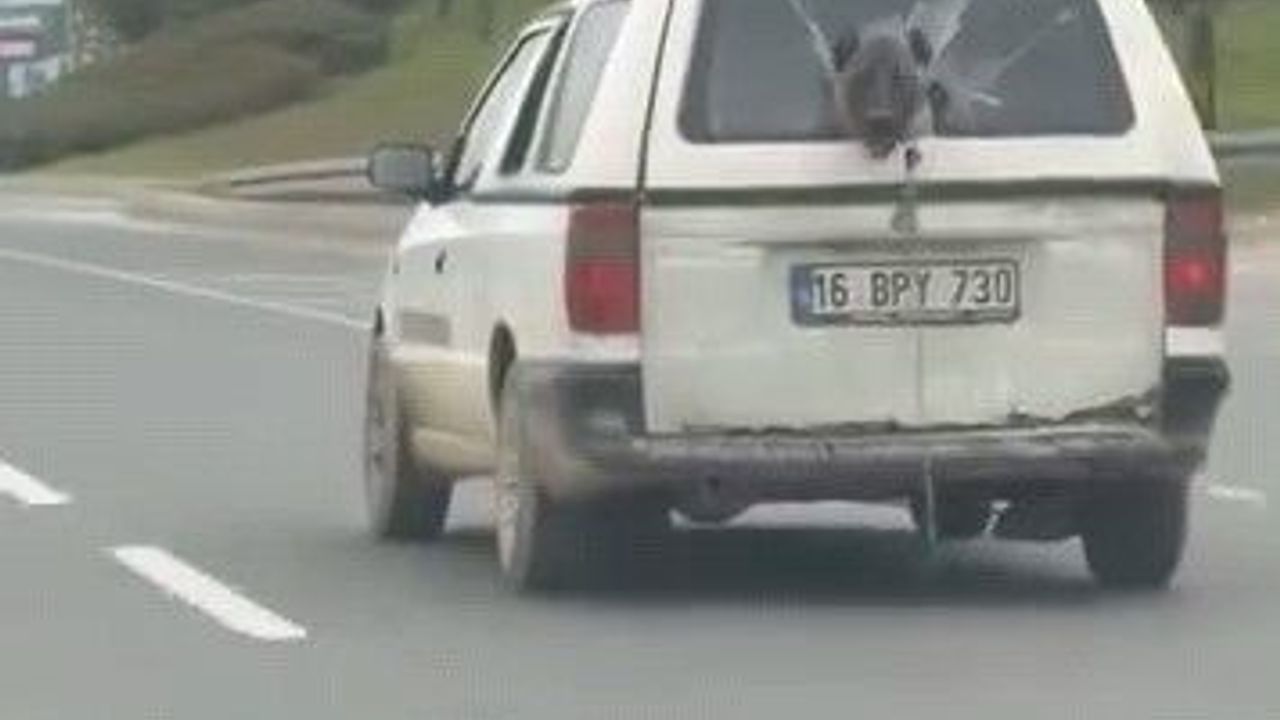 İlginç anlar, Bursa-Ankara karayolu üzeri İnegöl girişinde kayda alındı. Sürücüsünün ismi öğrenilemeyen kamyonetin arka camının kırık olduğu görüldü. Camdan başını dışarı çıkaran köpek, trafikteki diğer sürücülerin dikkatini çekti. Köpeğin rahat tavırları ve etrafı meraklı gözlerle izlemesi görenleri gülümsetti.