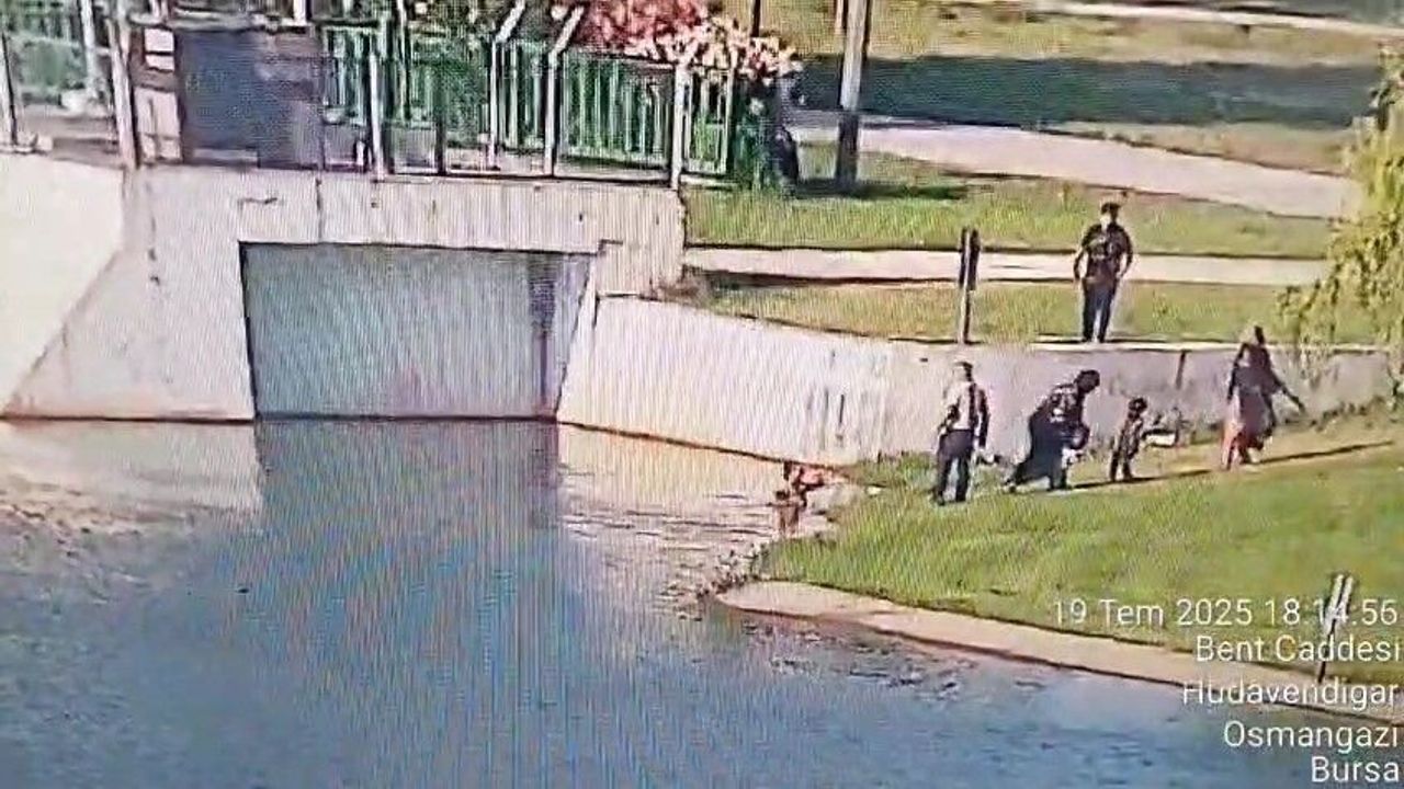 Parkın içerisinde güvenliği sağlayan Bursa Büyükşehir Belediyesi Özel Güvenlik personeli de, çocuğun suya düştüğünü görmesiyle koşarak geldi. İlk önce çocuğu yakalamaya çalışan güvenlikçi, daha sonra boyuna kadar gelen suya girerek çocuğu suyun yüzeyine çıkardı. Ailesine teslim edilen çocuk, büyük bir korku yaşadı.