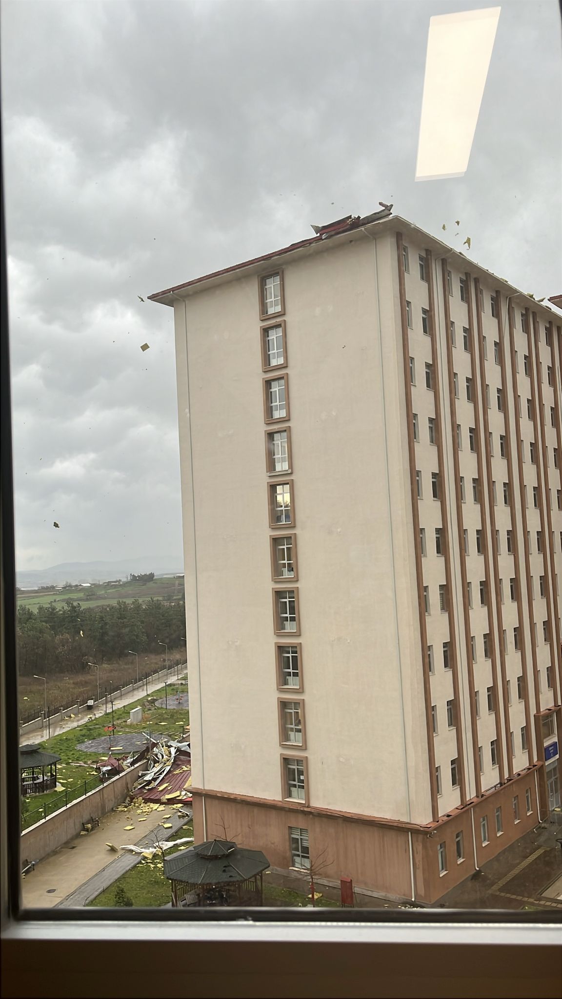 Bursa Uludağ Üniversitesi Görükle Kampüsü içerisinde bulunan Kredi ve Yurtlar Kurumu’na (KYK) bağlı Halime Hatun Öğrenci yurdunun çatısı, etkili olan olumsuz hava koşulları nedeniyle uçtu.
