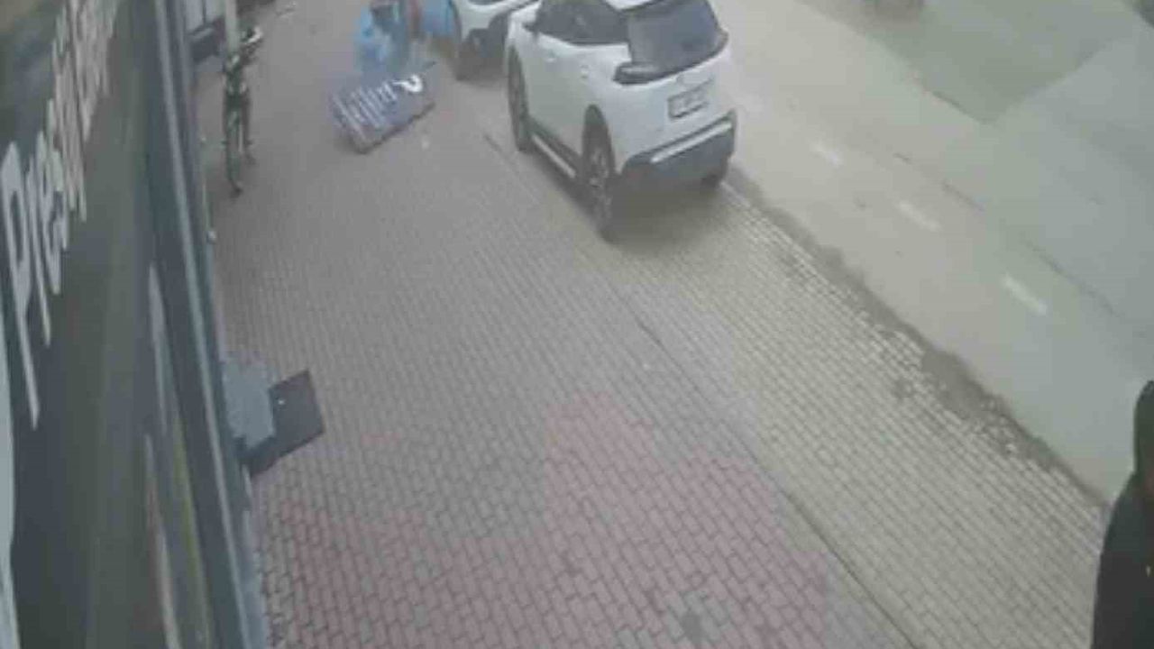 Yaşanan tehlikeli anlar, çevredeki bir iş yerinin güvenlik kamerasına yansıdı.