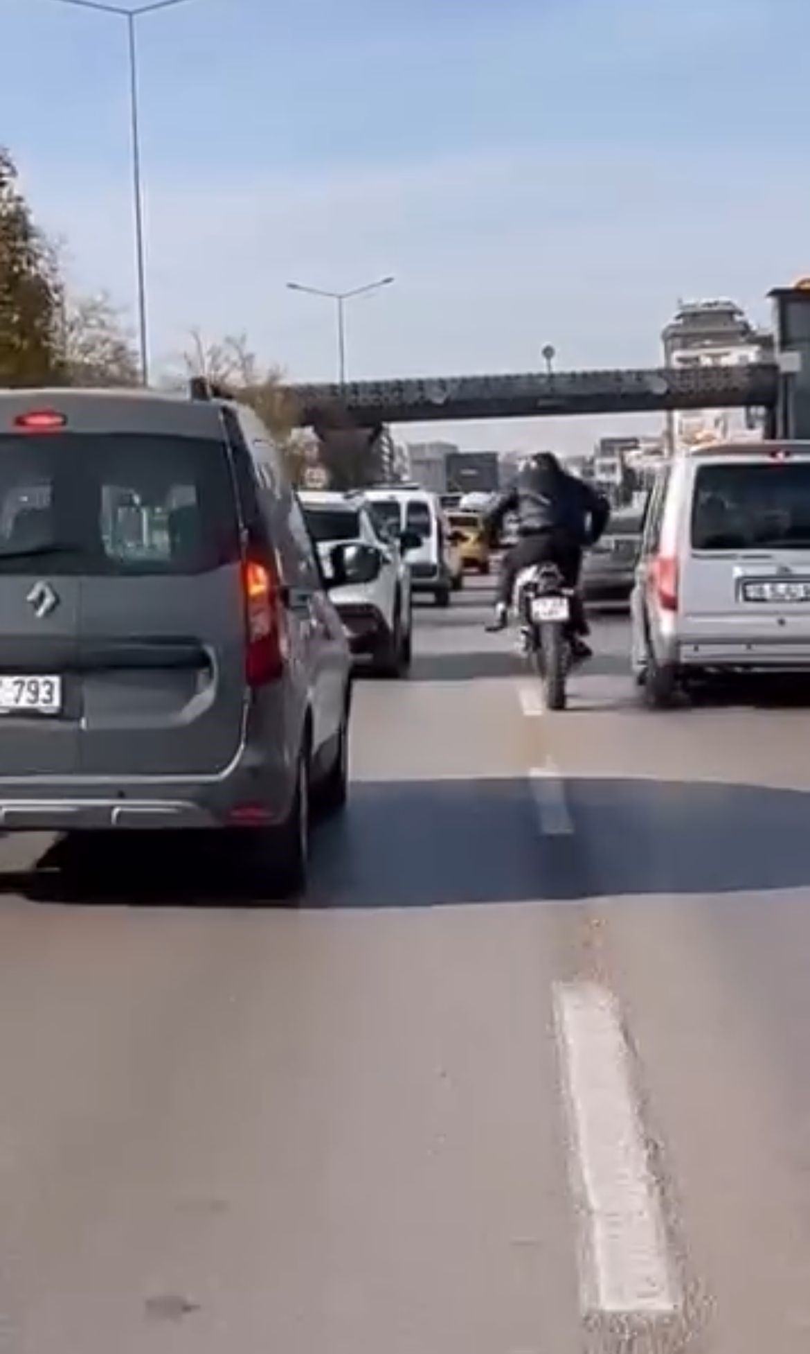Yoğun trafikte araçların arasından kıvrak hareketlerle geçen sürücünün, motosikleti bir ulaşım aracı gibi değil de adeta bir gösteri sahnesi gibi kullandığı gözlendi. Sürücünün kimliği henüz tespit edilemezken, polis olayla ilgili çalışma başlattı.