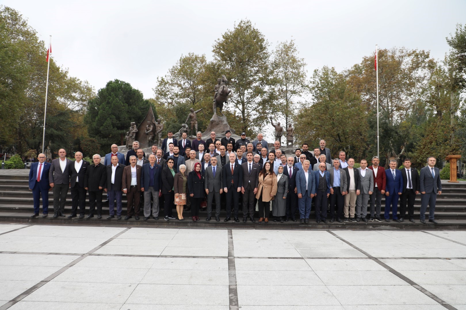 Saygı Duruşu ve İstiklal Marşının okunmasıyla başlayan törende, Muhtarlar Derneği Başkanı Oktay Garip anıta çelenk sunumunu yaptı. Ardından günün anlam ve önemine ilişkin bir konuşma yapan Oktay Garip, "Muhtarlık müessesesi 1829'dan günümüze bu topraklarda aziz milletimize hizmetini sürdürmektedir. Genel ve yerel sorunların ilgili kurum ve kuruluşlara iletilmesine köprü rolü oynayan muhtarlık müessesesi, Osmanlı'dan günümüze taşınan önemli bir yerel yönetim birimidir. Yerel yönetimlerin mihenk taşları olan köy ve mahalle muhtarlıklarımız vatandaşlarımızın ilk devlet ve hizmet kapısıdır. Muhtarlarımız köylerimizde ve mahallelerimizde özveriyle çalışmış, devletimizin her zaman gören gözü, işiten kulağı olmuştur. Her geçen gün büyüyen bu güzel şehirde milletimizden aldığımız güçle 116 muhtarımız ile görevimizi yerine getirmekte, milletimizin acısıyla hüzünlenip, derdiyle dertlenip, sevinciyle sevinmekteyiz. Muhtar siyasetten uzak, tarafsız, tamamen kendi kişiliğiyle toplumda kabul görmüş halkın güvenoyu ile seçilmiş en önemli kanaat önderidir. Yerel yönetimin kılcal damarı ve demokrasinin temel taşıdır. Bu büyük camianın bir parçası olmaktan onur ve gurur duyuyoruz. Türkiye Cumhuriyeti Devletinin banisi Ulu Önder Gazi Mustafa Kemal Atatürk'ün demiş olduğu gibi; muhtar, demokrasinin temel taşıdır" dedi.