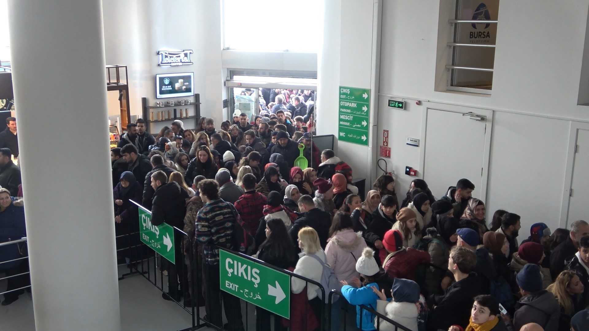 Hafta sonunu Uludağ'da değerlendirmek isteyenler, sabahın erken saatlerinden itibaren teleferik istasyonuna akın etti. Hem trafik çilesi yaşamamak hem de güneşli havanın tadını çıkarmak için teleferiği tercih edenler, büyük şok yaşadı. Genellikle yaşanan yoğunluk sebebiyle kapının dışına kadar çıkan kuyruk, bu sefer mahalle aralarına kadar uzadı.