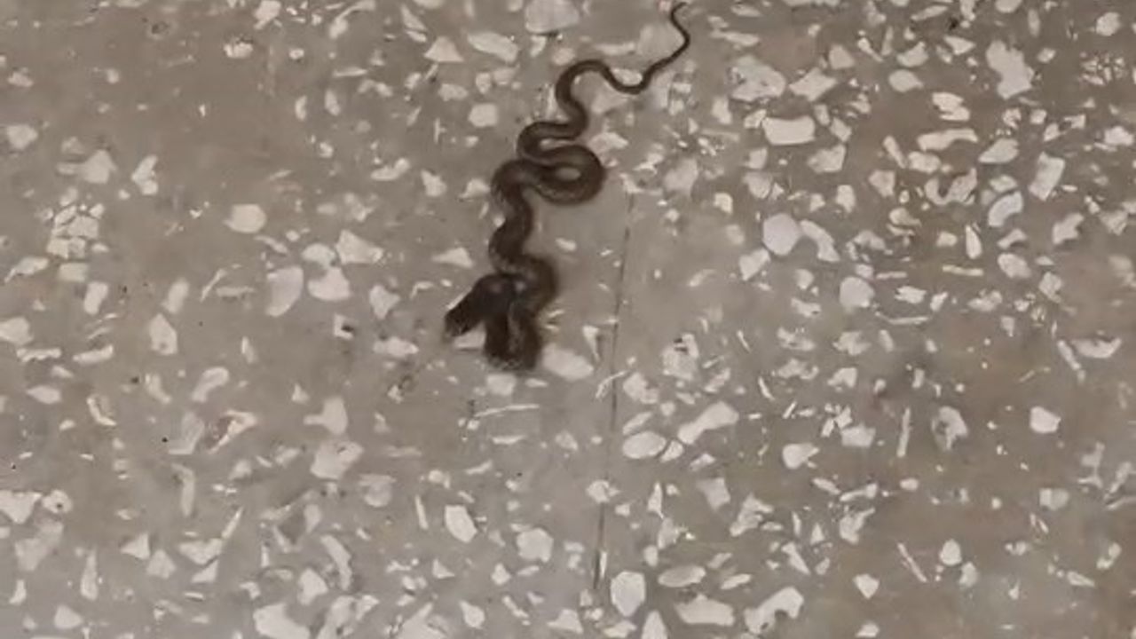 Sabah saatlerinde derse girmek üzere koridorda ilerleyen öğrenciler, yerde hareket eden bir yavru yılan fark etti. Durumu hemen öğretmenlerine bildiren öğrencilerden kimi eline almak istedi. Öğretmenin ikazıyla yılandan uzaklaşan öğrencilerden kimi ise korktu.