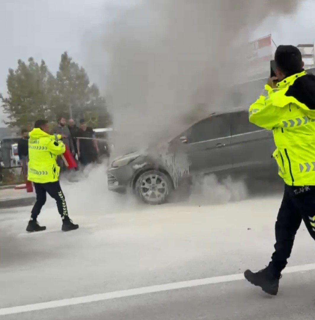Olay, Nilüfer ilçesi Çalı Yolu üzerinde meydana geldi. Hareket halindeyken otomobilden çıkan yoğun duman, çevrede paniğe neden oldu. Sürücü, büyük bir soğukkanlılıkla aracı emniyet şeridine çekip uzaklaştı. Şans eseri olay yerinden geçen trafik polisleri, yangına yangın tüpleriyle hızlı müdahalede bulundu. Polislerin çabası sayesinde yangın kısa sürede kontrol altına alındı.