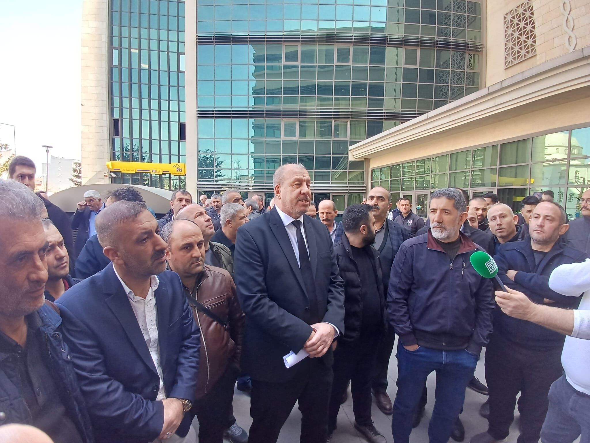 Bursa’da özel halk otobüsçüleri, hak edişlerini alamadıkları gerekçesiyle Bursa Büyükşehir Belediyesi binası önünde bir araya geldi.