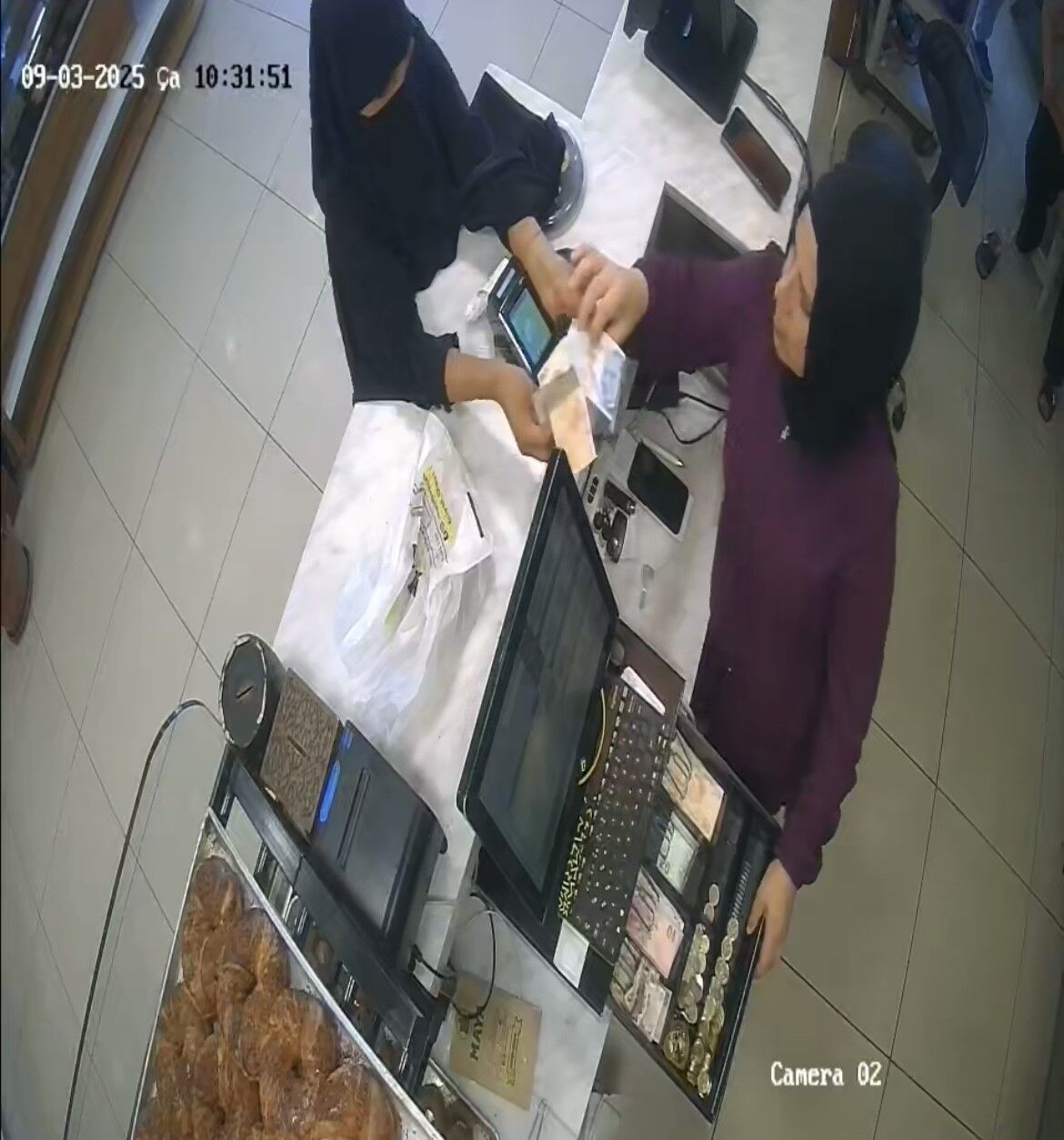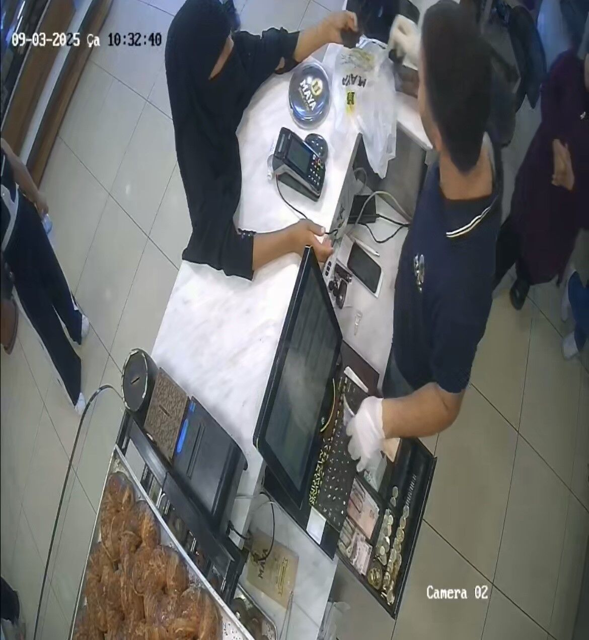 Pastanenin güvenlik kamerasına yansıyan görüntülerde, şüpheli kadının kasiyeri kandırmaya çalıştığı, ardından parayı cüzdanına sakladığı ve işletme müdürünün olaya müdahale ettiği anlar yer aldı.