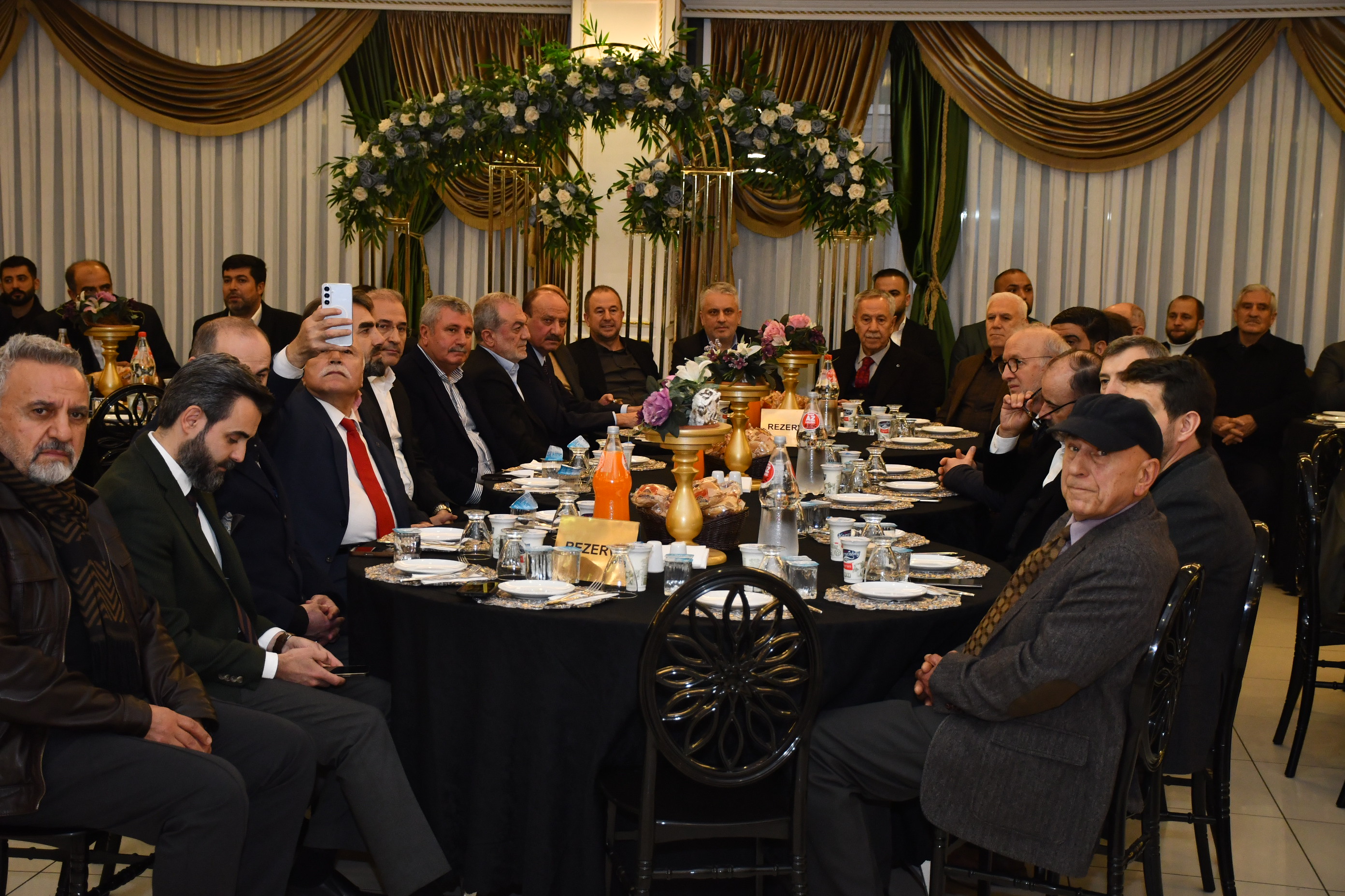 Tören, nikah merasiminin ardından verilen akşam yemeği ile devam etti. Aile büyükleri, masaları tek tek gezerek konuklarla yakından ilgilenirken, protokol üyeleri de genç çift ve aileleriyle hatıra fotoğrafı çektirdi.