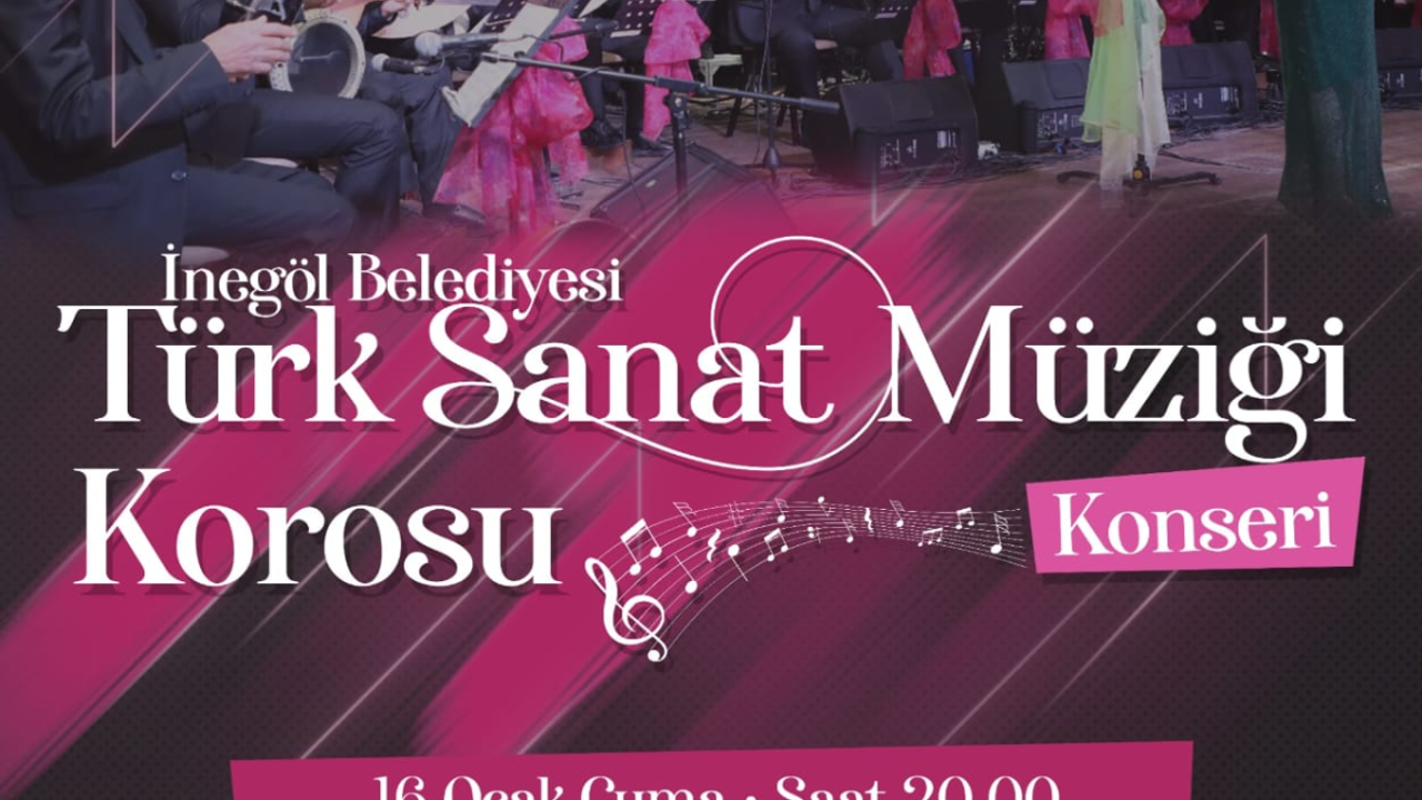 İnegöl Belediyesi Türk Sanat Müziği Korosu, Şef Diler Yalaza yönetiminde sahne alacak. Türk Sanat Müziği’nin hafızalara kazınan, seçkin eserlerinin seslendirileceği konser, 16 Ocak Cuma günü saat 20.00’de Beşinci Mevsim Kültür Sanat Merkezi’nde gerçekleştirilecek. Koro ve saz sanatçılarının güçlü performanslarıyla müzikseverlere unutulmaz bir akşam yaşatması hedefleniyor.