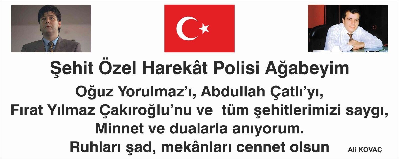 Ali Kovaç ve Fatma Yeral, "Etrafımızda yaşanan ateş çemberini görüyoruz. Türk milletinin daha da fazla kenetlenip bir birimize sahip çıkması gerekiyor. Oğuz Yorulmaz ve Abdullah Çatlı gibi devlete ve milletimize birçok şekilde faydası dokunmuş kişilerin ve tüm şehitlerimizden kuvvet alarak çocuklarımıza gerçek bir gelecek için taşın altına elimizi koymalıyız. Devletimize sıkı sıkıya sarılıp güvenmeliyiz. Allah, tüm şehit ve ölmüşlerimizin mekanını cennet eylesin" dedi.
