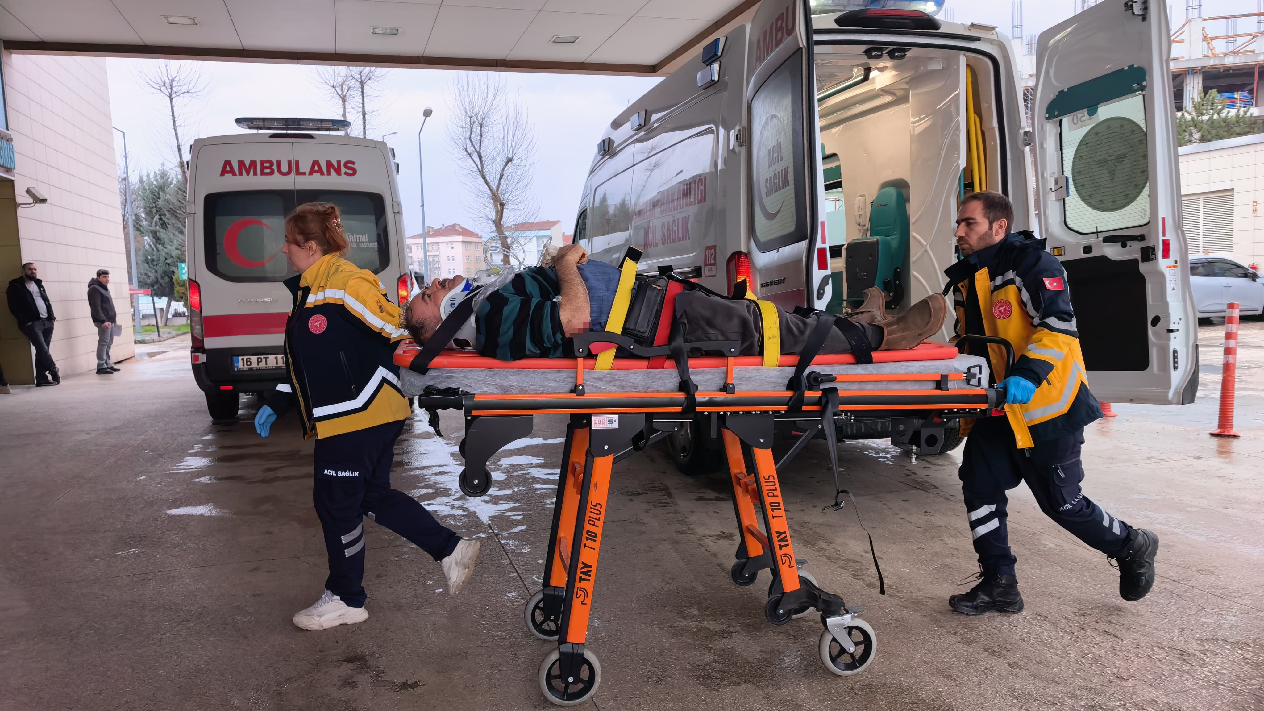 Çarpmanın etkisiyle yere savrulan Nizamettin E. yaralandı. İhbar üzerine olay yerine sevk edilen sağlık ekipleri, yaralıyı ambulansla İnegöl Devlet Hastanesine kaldırdı. Yaralının sağlık durumunun ciddiyetini koruduğu öğrenildi.