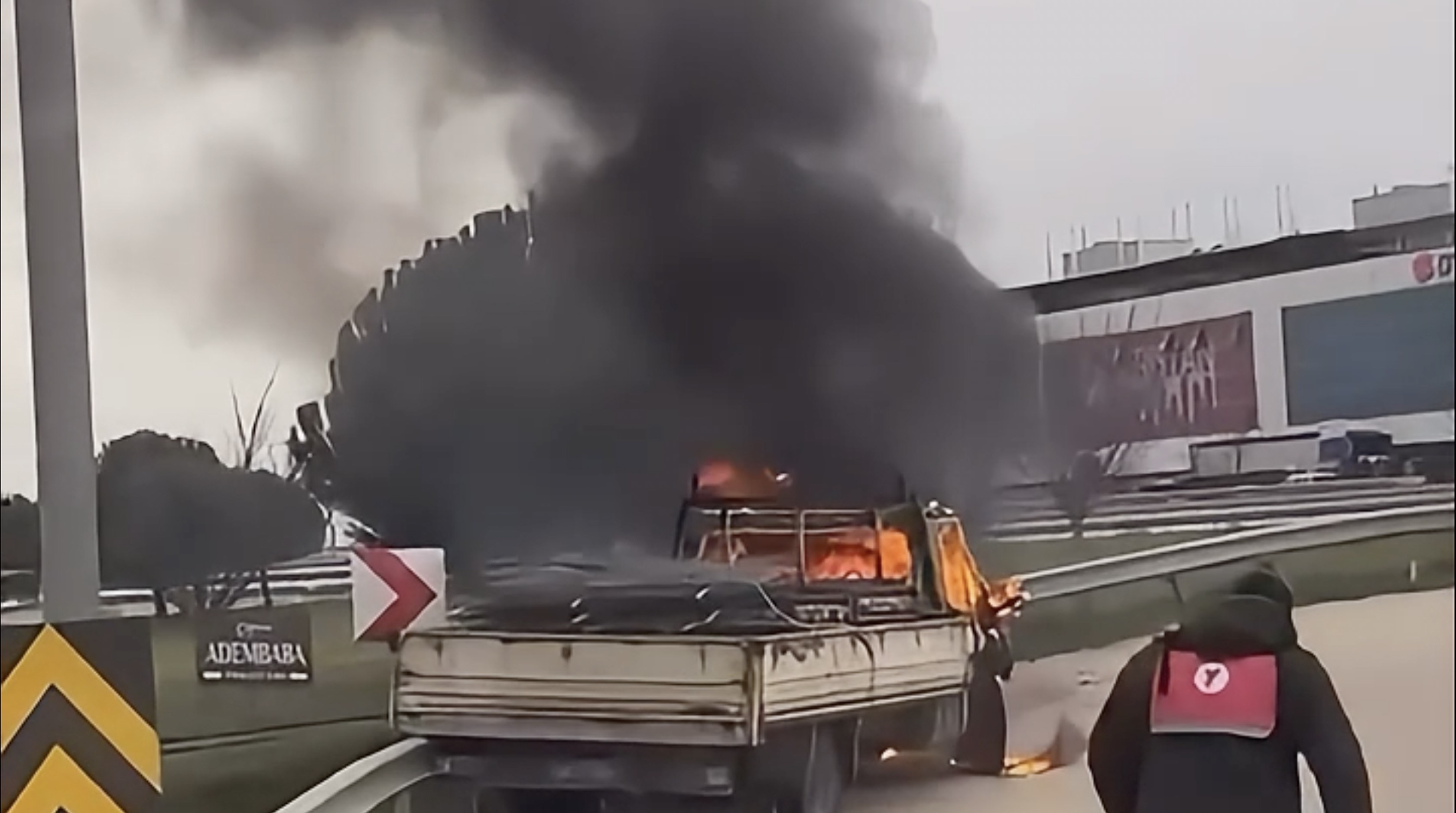 Edinilen bilgilere göre, İzmir Yolu'ndan Görükle dönüş sapağına ilerleyen kamyonet, henüz bilinmeyen bir nedenle aniden alev aldı.