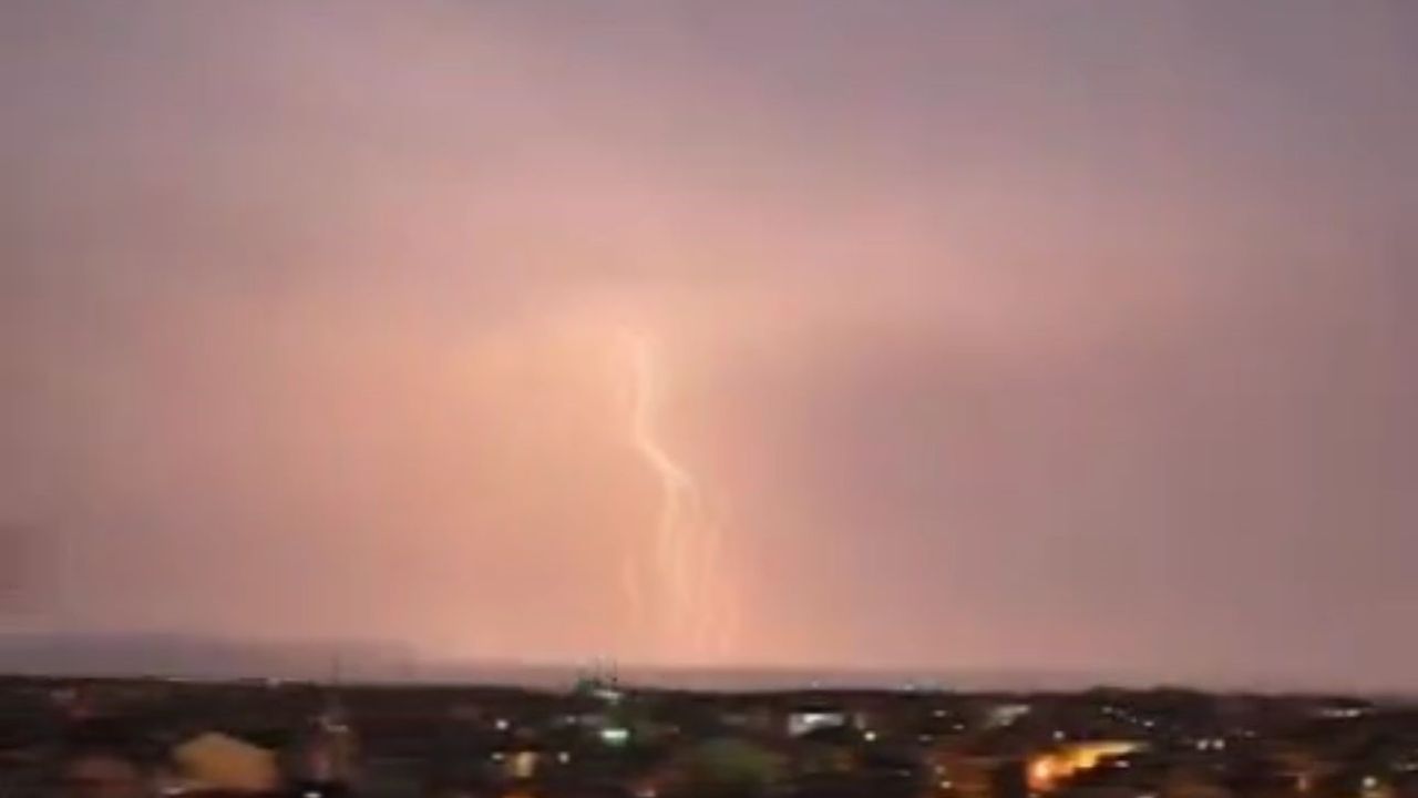 Karacabey ilçesinde akşam saatlerinde art arda şimşekler çaktı.